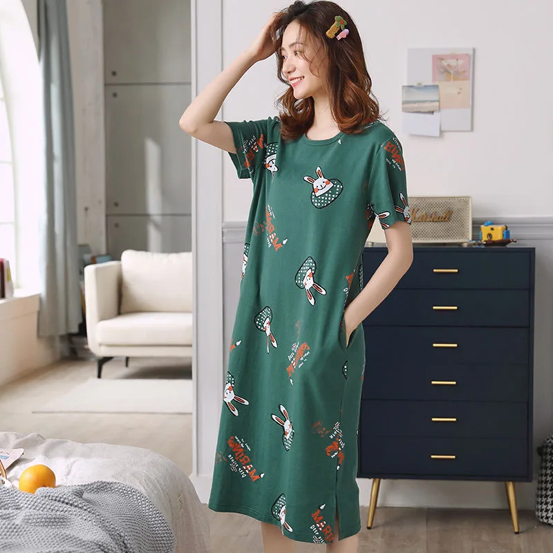 2021 женская пижама с коротким рукавом, повседневные ночные рубашки, летние Ночные рубашки с мультяшным рисунком, домашняя одежда, платье для сна для девочек