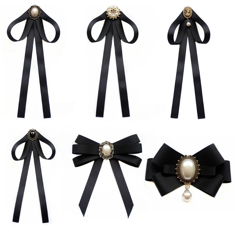Броши с имитацией жемчуга и лентой, булавка, галстук-бабочка, винтажный предварительно привязанный воротник, Ювелирное Украшение, зажим для рубашки с бантом, Женский Галстук, украшение для одежды для девочек