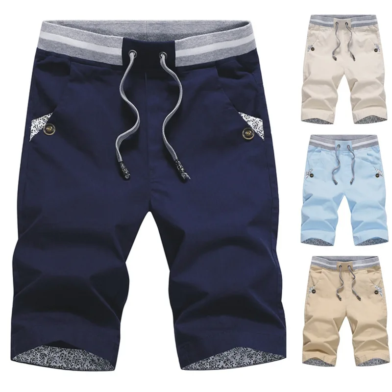 Шорты мужские хлопковые на шнуровке, повседневные модные брендовые бриджи с эластичным поясом, пляжные шорты, MT150, лето
