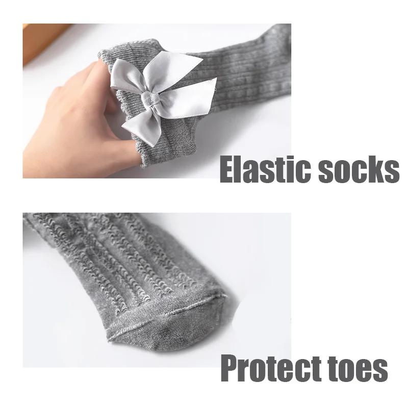 Мягкие хлопковые Гольфы с бантом для девочек, детские носки, гибкие женские носки для младенцев, Нескользящие Детские носки, носки для новорожденных