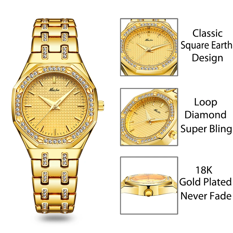 Часы женские, из золота 18 карат, Классические кварцевые, с бриллиантами
