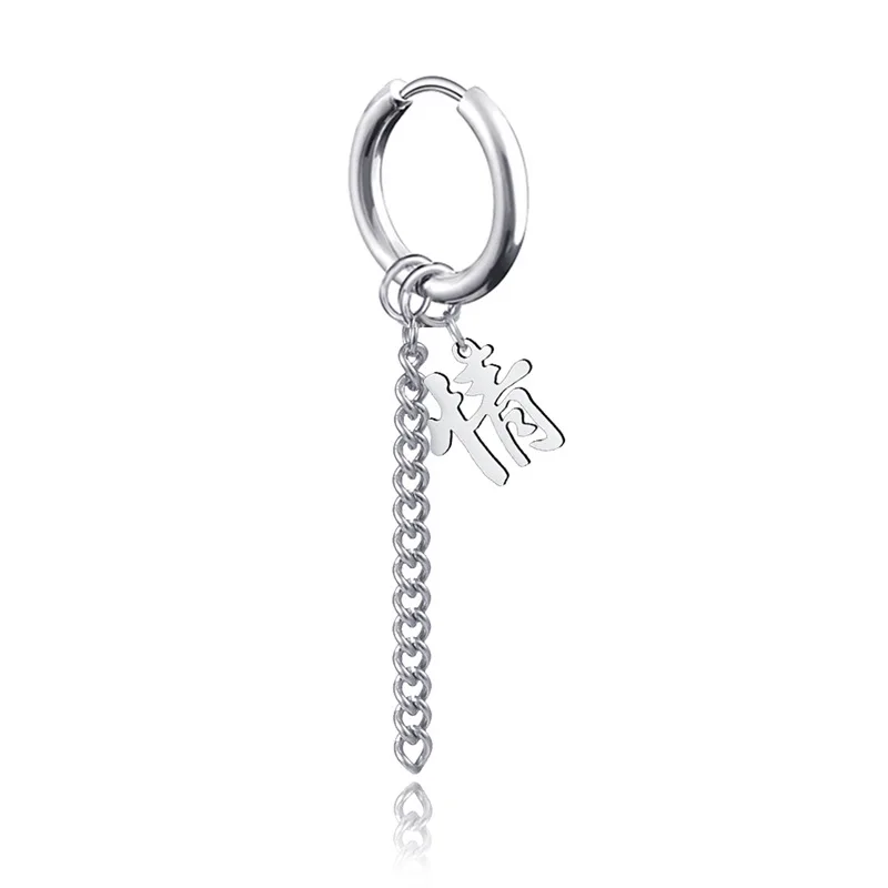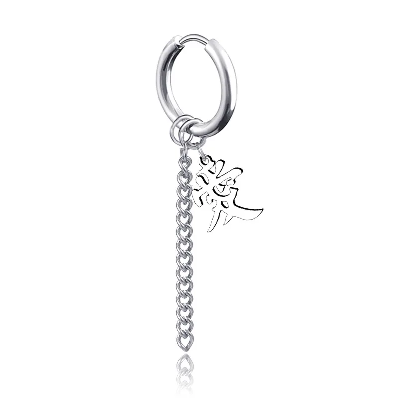 Геометрические висячие серьги унисекс из титановой нержавеющей стали, серьги-кольца с кисточками и китайскими иероглифами, Мужская Звезда, крест, дракон, перо