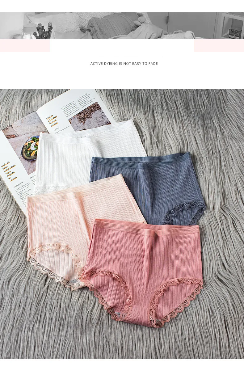 Женские хлопковые трусы, мягкие трусики для девочек, кружевные трусики с высокой талией, полосатые сексуальные женские трусики, нижнее белье M-XXL размера плюс