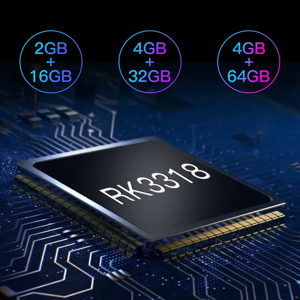 Основные характеристики:-CPU: четырехъядерный процессор Rockchip RK3318 64 бит Cortex-A53;-GPU: Mali-450MP2, до 750 Мб;-RAM/ROM:1, 2GB/16GB + 2,4G & 5G WIFI + Bluetooth,2, объемом памяти 4 Гб/32 ГБ + 2,4G & 5G WI-FI + Bluetooth,3, 4 ГБ/64 ГБ + 2,4G & 5G WI-FI + Bluetooth,-ОС Android 10;-Поддержка H.265, 4K 60pfs, HDMI 2,0, USB3.0;