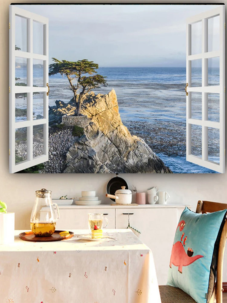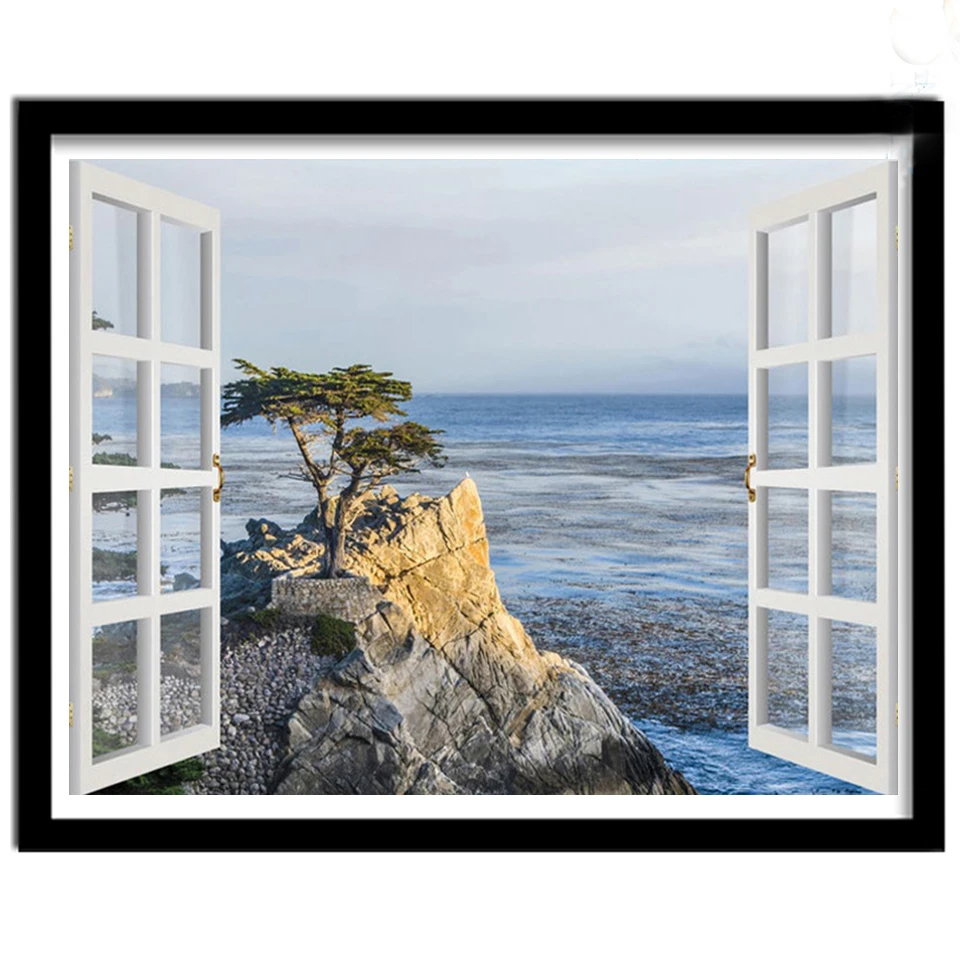 Набор для алмазной живописи 5D сделай сам, Набор для вышивки крестиком, окон, снаружи, дерево, пейзаж, мозаика, вид на море, настенные наклейки
