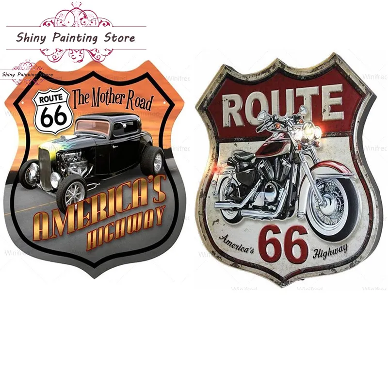 Route 66 значки 5D алмазная живопись сделай сам Американская дорога Стразы Вышивка мозаика вышивка крестиком украшение для дома полный дизайн