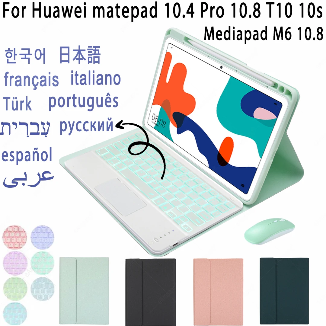 Чехол с испанской тачпадом для клавиатуры Huawei Matepad T10 10s 10,4 Pro Mediapad M6 10,8, чехол для Huawei с арабской клавиатурой с подсветкой