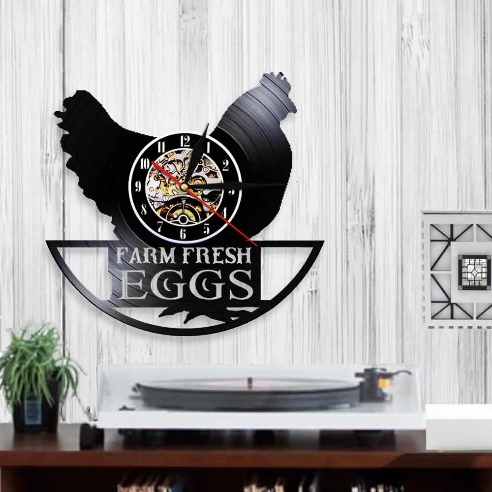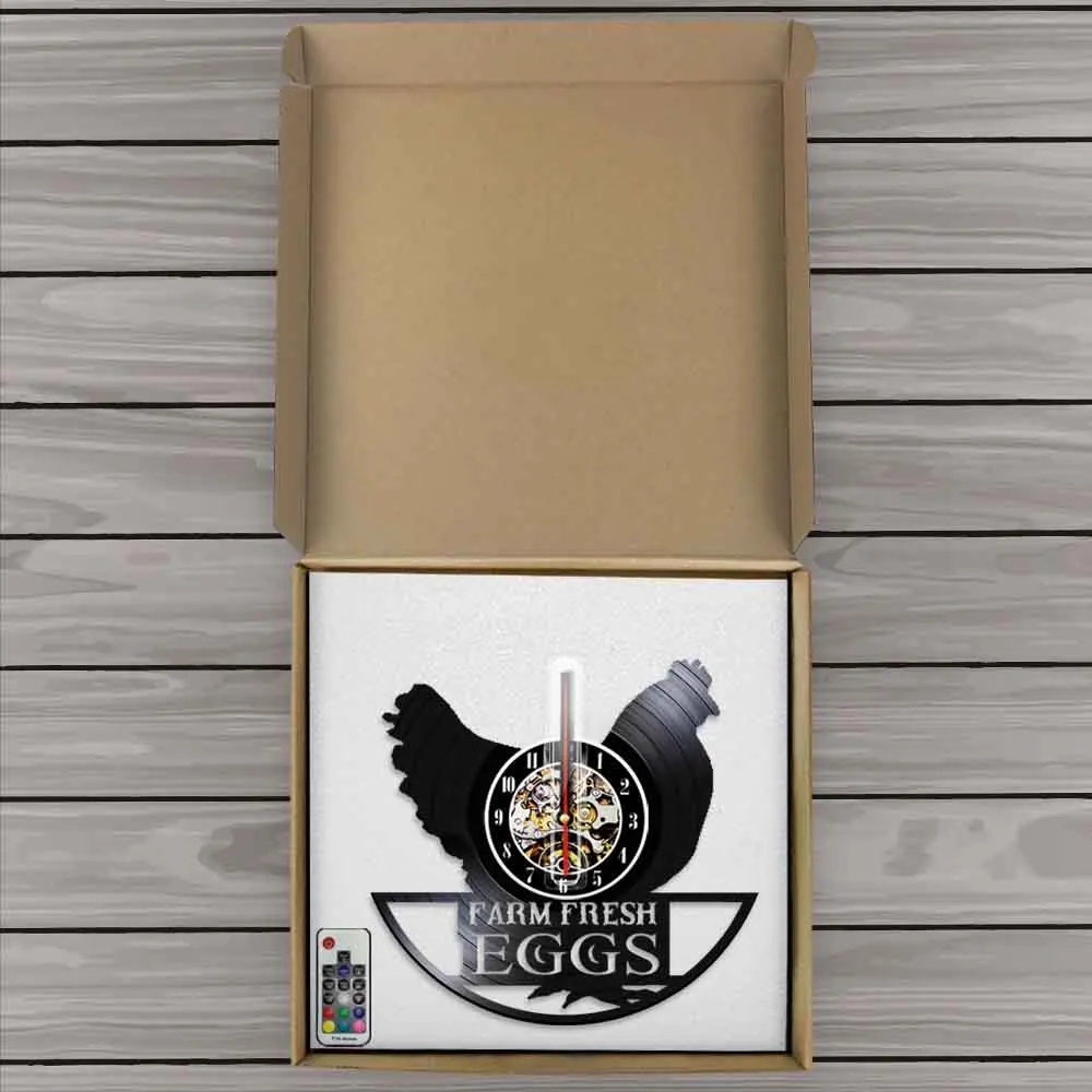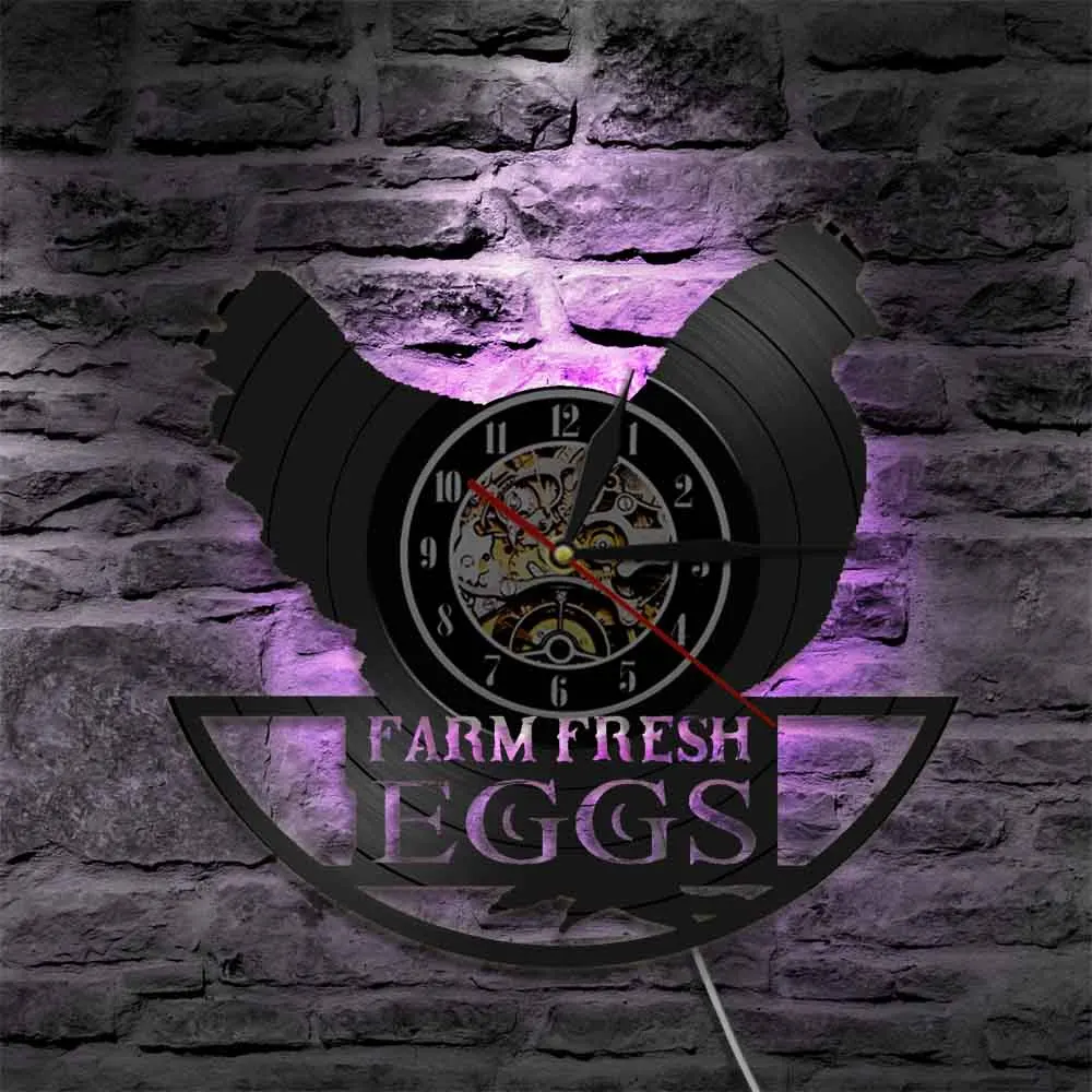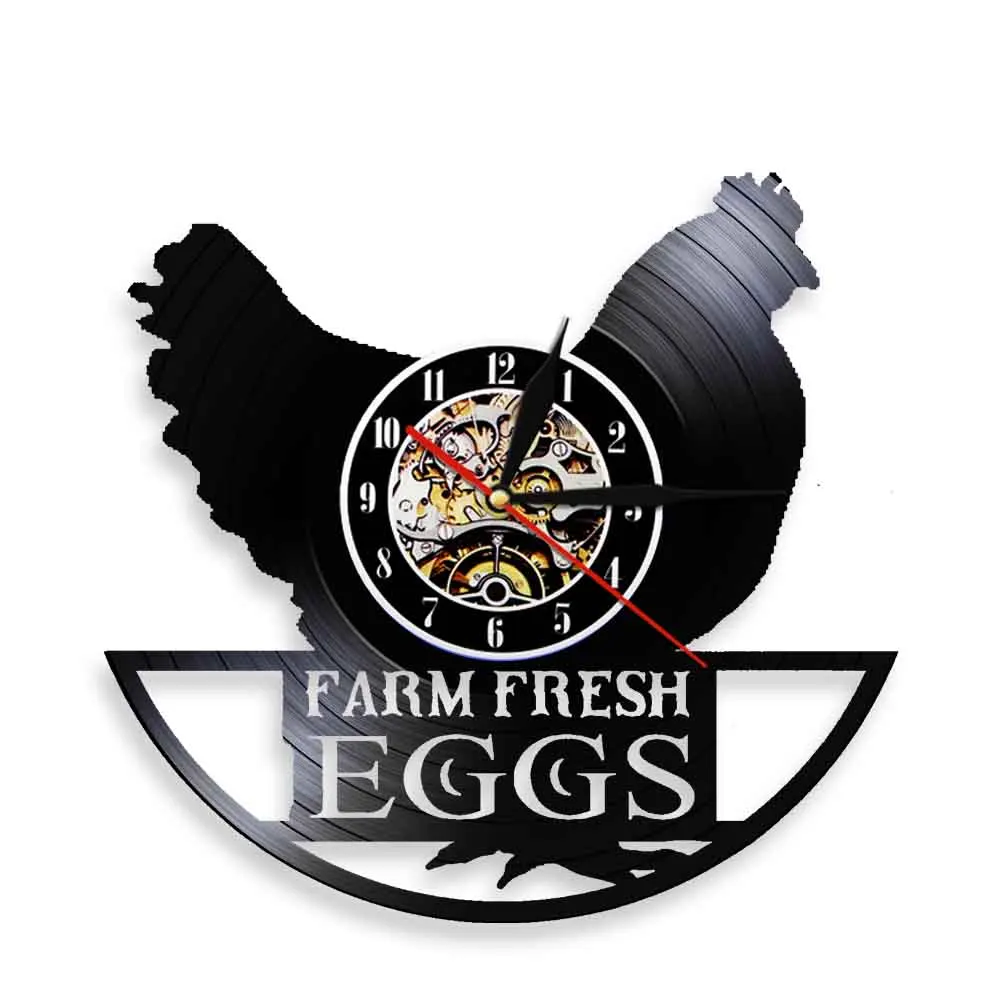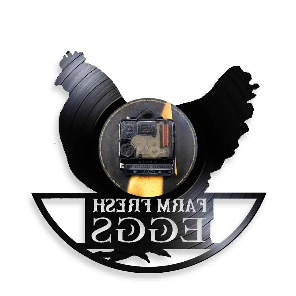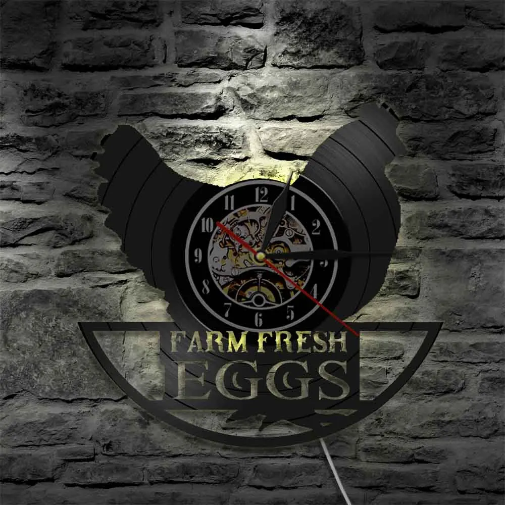 Курица светодиодный светильник дом стены искусства современный фермы свежие яйца фермы Стиль петух Винтаж виниловых пластинок, настенные часы