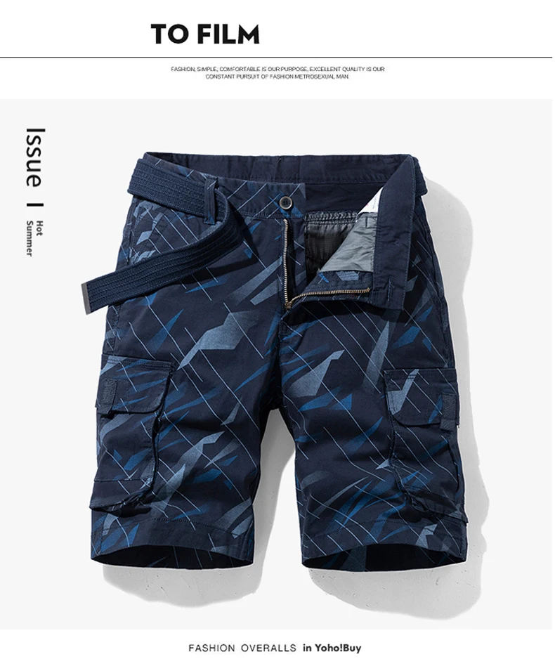 Шорты-карго мужские, из чистого хлопка, камуфляжные, свободные, летние