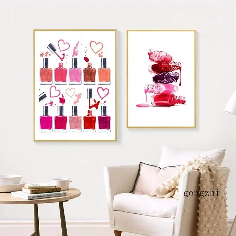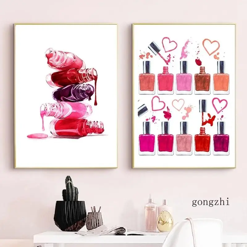 Лак для ногтей Макияж Красота акварельный плакат Маникюр Холст Живопись Печать ногтей салон студия стены искусства картины декор для ванной