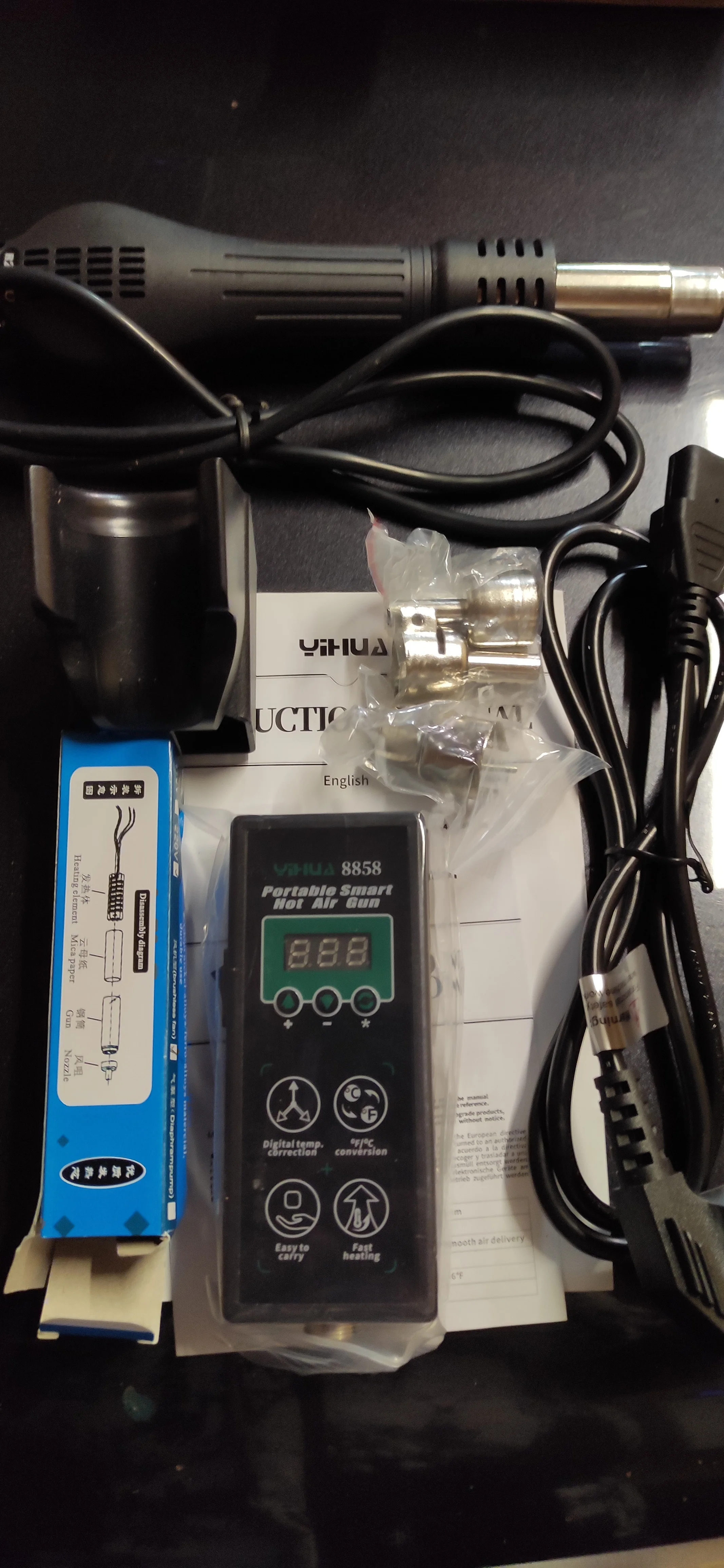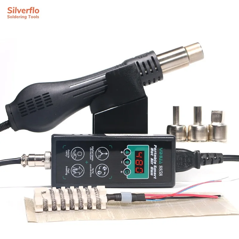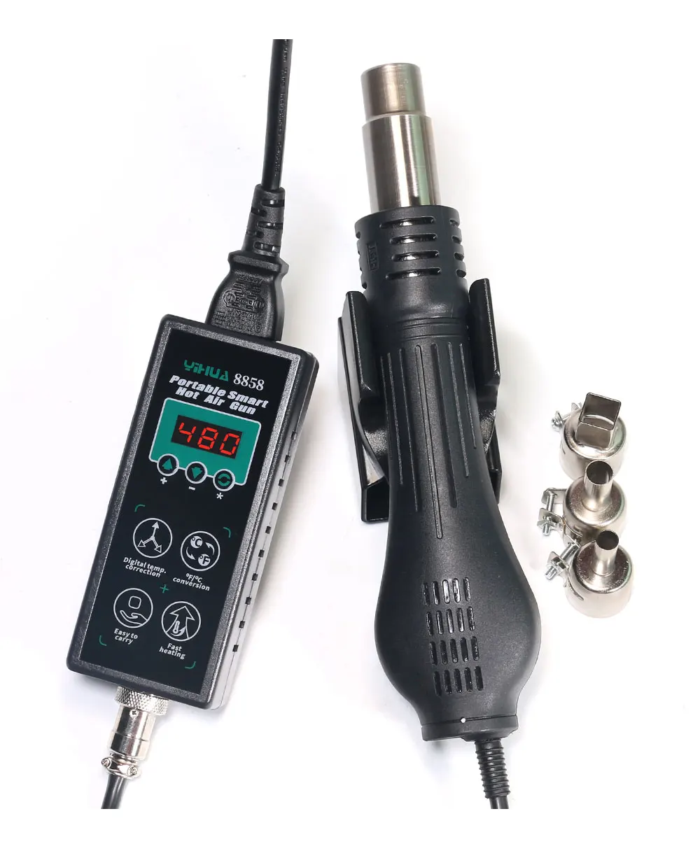 Паяльная станция YIHUA 8858 с пистолетом горячего воздуха, портативная сварочная станция с цифровым дисплеем, тепловая пушка для ремонта BGA PCB IC