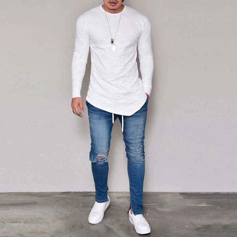 Мужские повседневные футболки Slim Fit Футболка новые весенние модные топы с длинным рукавом и О-образным вырезом Футболка Camisa Masculina
