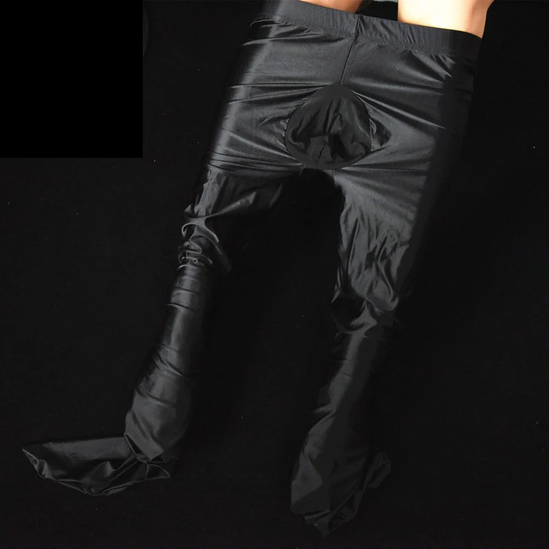 Мужские колготки Sissy с открытым карманом для пениса, Колготки с прорезями, чулки, леггинсы, Блестящие Брюки, колготки, экзотическое Мужское нижнее белье