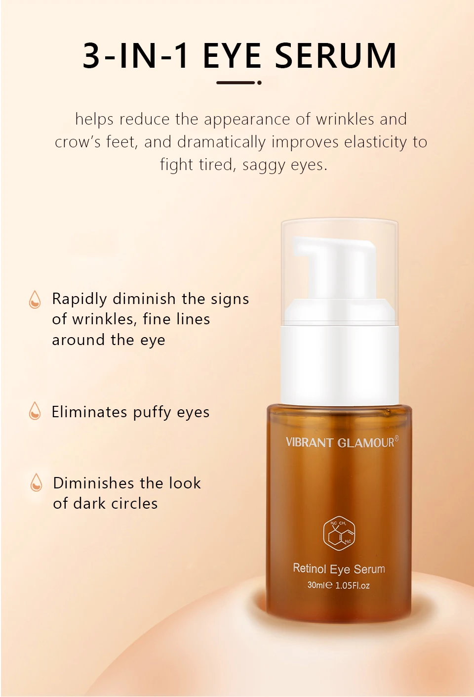 Яркие Гламурные ретинол глаз Сыворотки анти-морщинка против мешков под глазами, исчезают мелкие морщинки! Убирает темные круги под глазами, осветляет отбеливающий уход за кожей 30 мл