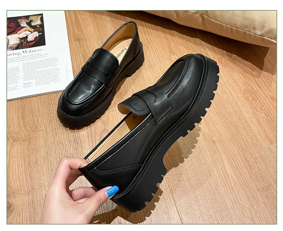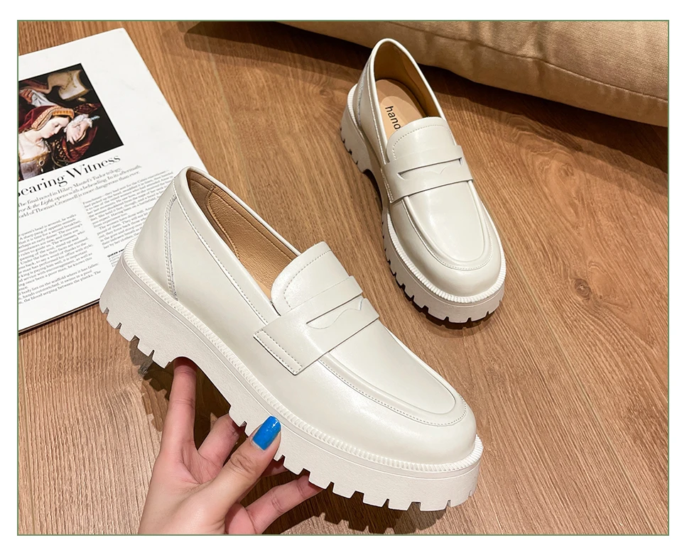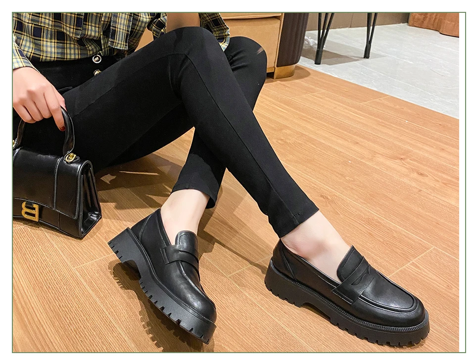 Женская Весенняя обувь U-DOUBLE, новинка 2021, повседневные лоферы на толстой подошве в британском стиле, модная обувь из натуральной кожи для девушек
