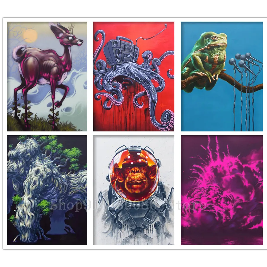 5D алмазная живопись сделай сам, абстрактное искусство, животное, олень, осьминог, лягушка, обезьяна, красочная Алмазная мозаика, вышивка крестиком, домашний декор