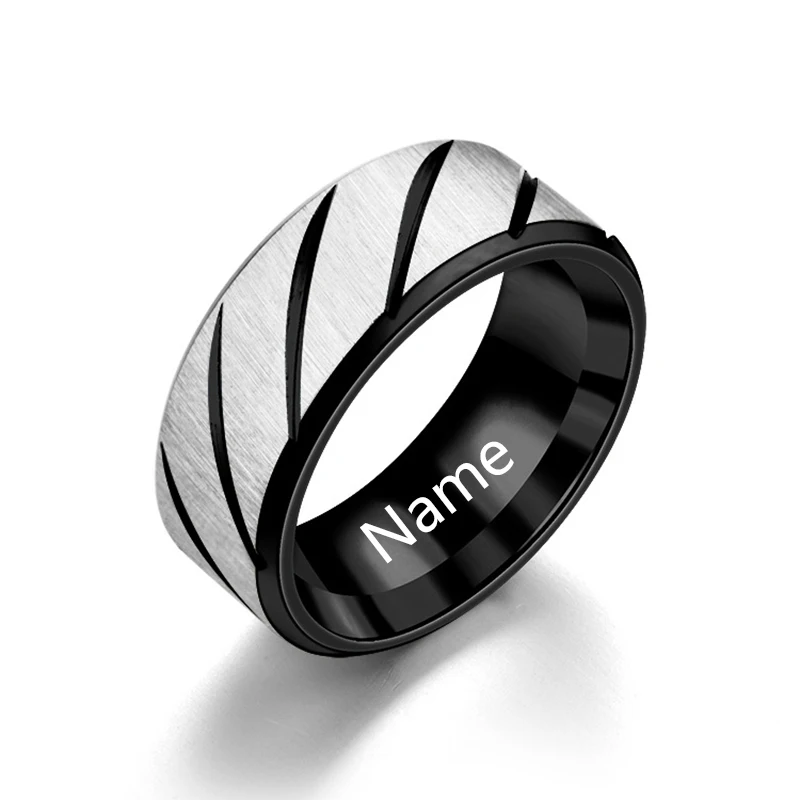 Кольцо женское из нержавеющей стали, черное, с гравировкой по индив...
