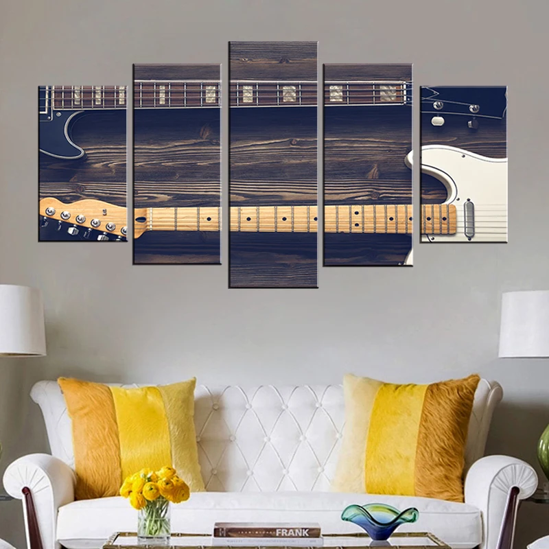 Картина на стену, модульный постер, 5 панелей, гитара, музыка, винтажная рамка, HD Печатный современный холст, картины для гостиной, домашний декор
