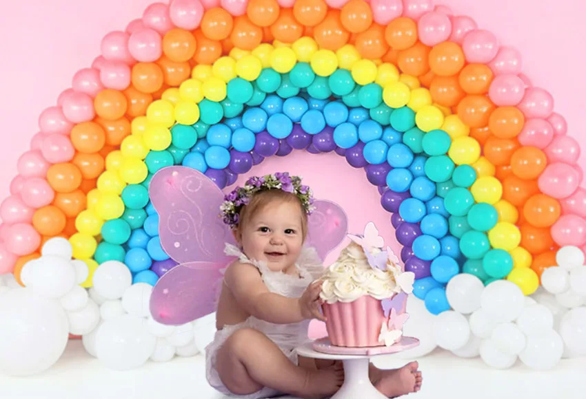 Mehofond торт разбивать фон день рождения радуга воздушный шар фотография фон студия облака Розовый декор Фотофон фотозона реквизит