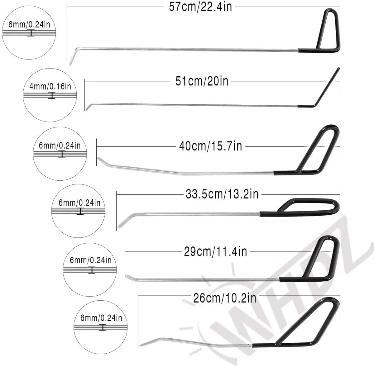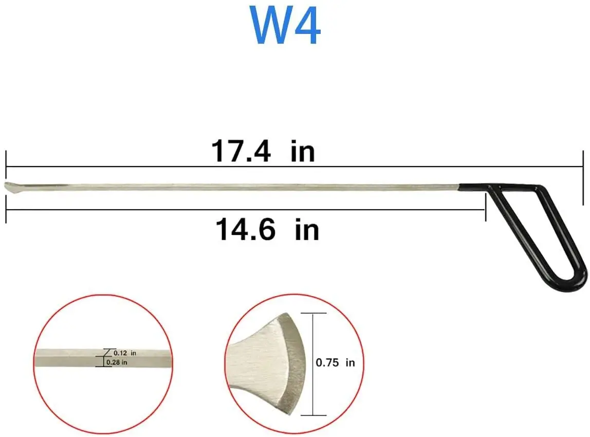 Набор 1: C1 - 1.53ft длина, 2,36 дюймов носочной частью. C2 - 1.02ft длина, 1,57 дюйма носок. C3 - 1.49ft длина, 0,98 дюймов носочной частью. C4 - 0.49ft длина, 1,57 дюймов носочной частью. C5-0,69 футов в длину, 0,78 дюйма в носке. C6-0,72 фута длина, 1,37 дюйма носок. Комплект 2: Стержень B7: он очень прочный для толстого металла. Стержень C3: он достаточно тонкий, чтобы попасть в небольшие места, такие как зазор окна автомобиля. C5 стержень: C5 с круглым гладким концом, не повреждает оригинальную краску. Стержень C6: C6 с плоским концом, ручка короткая, более легкая в эксплуатации, также подходит для меньшего зазора Набор 3: Стильные стержни 3x W 1x B стильные стержни