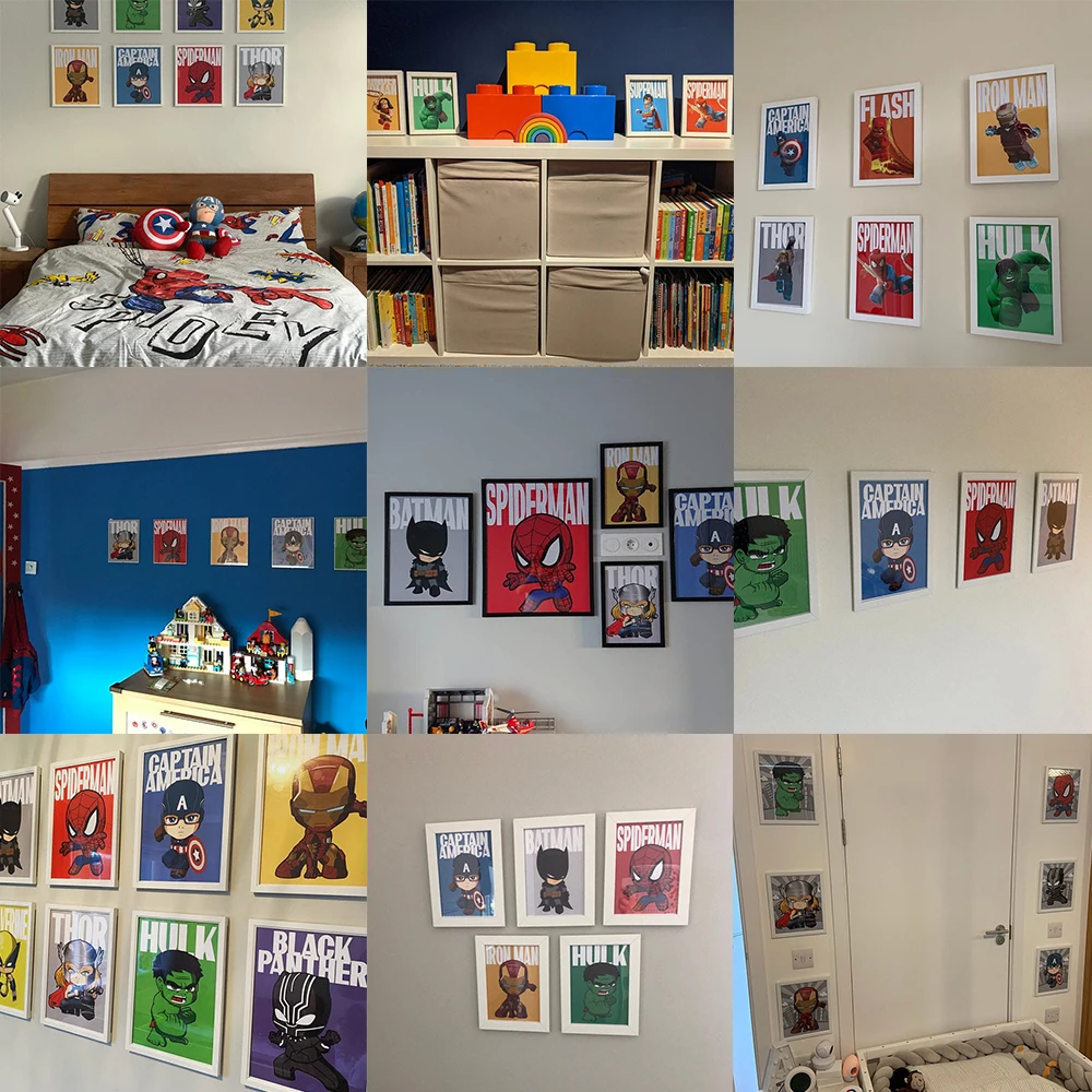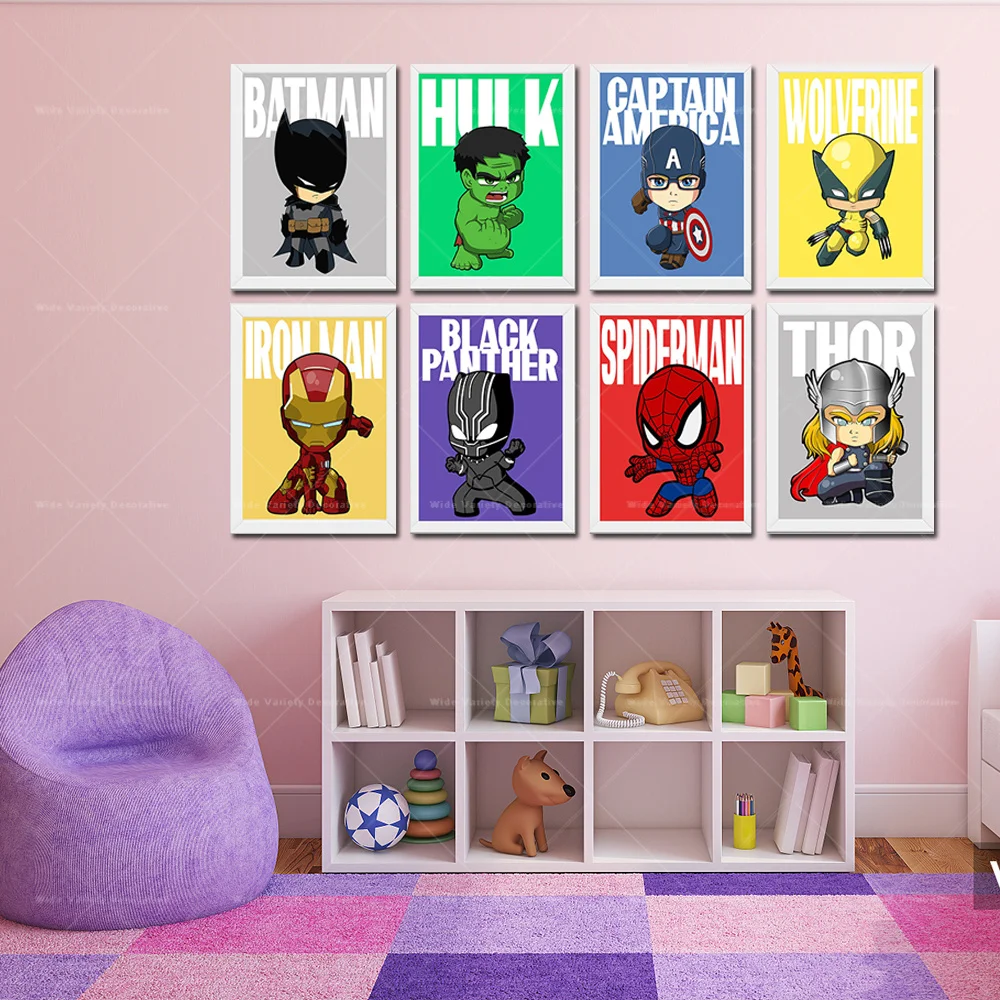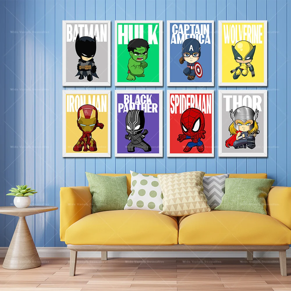 Искусство на холсте Тройной Marvel, настенный постер с изображением Капитана Америки, человека-паука, Халка, Железного человека, Тора