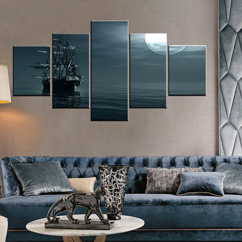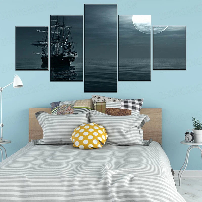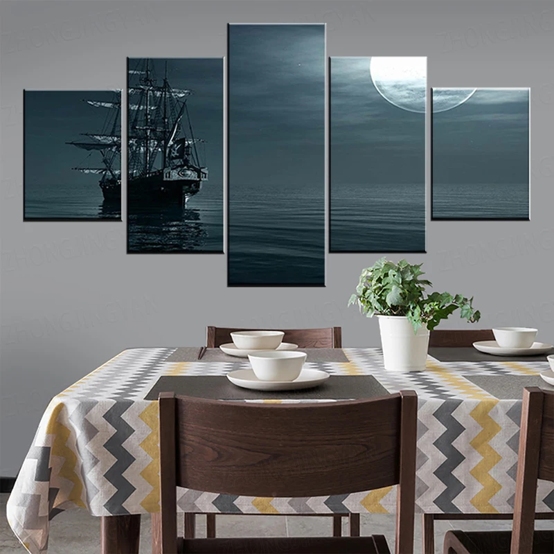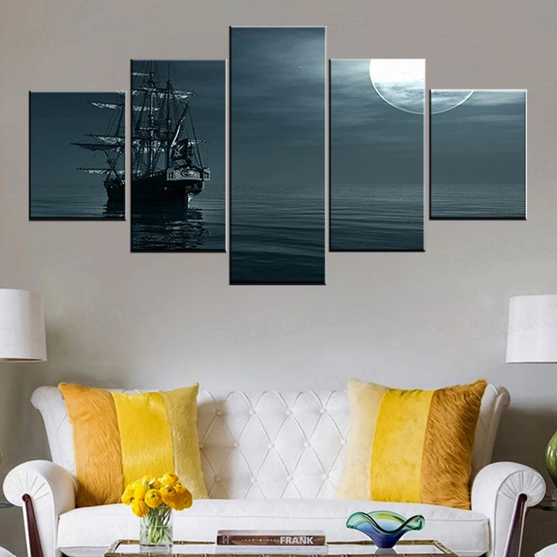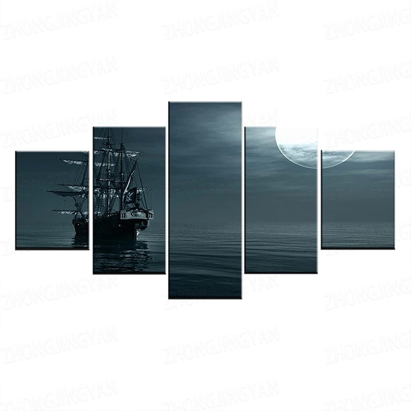 Лодка на море в вечернее время 5 шт. обои Современная Модульная художественный плакат на холсте картина для гостиной домашний декор