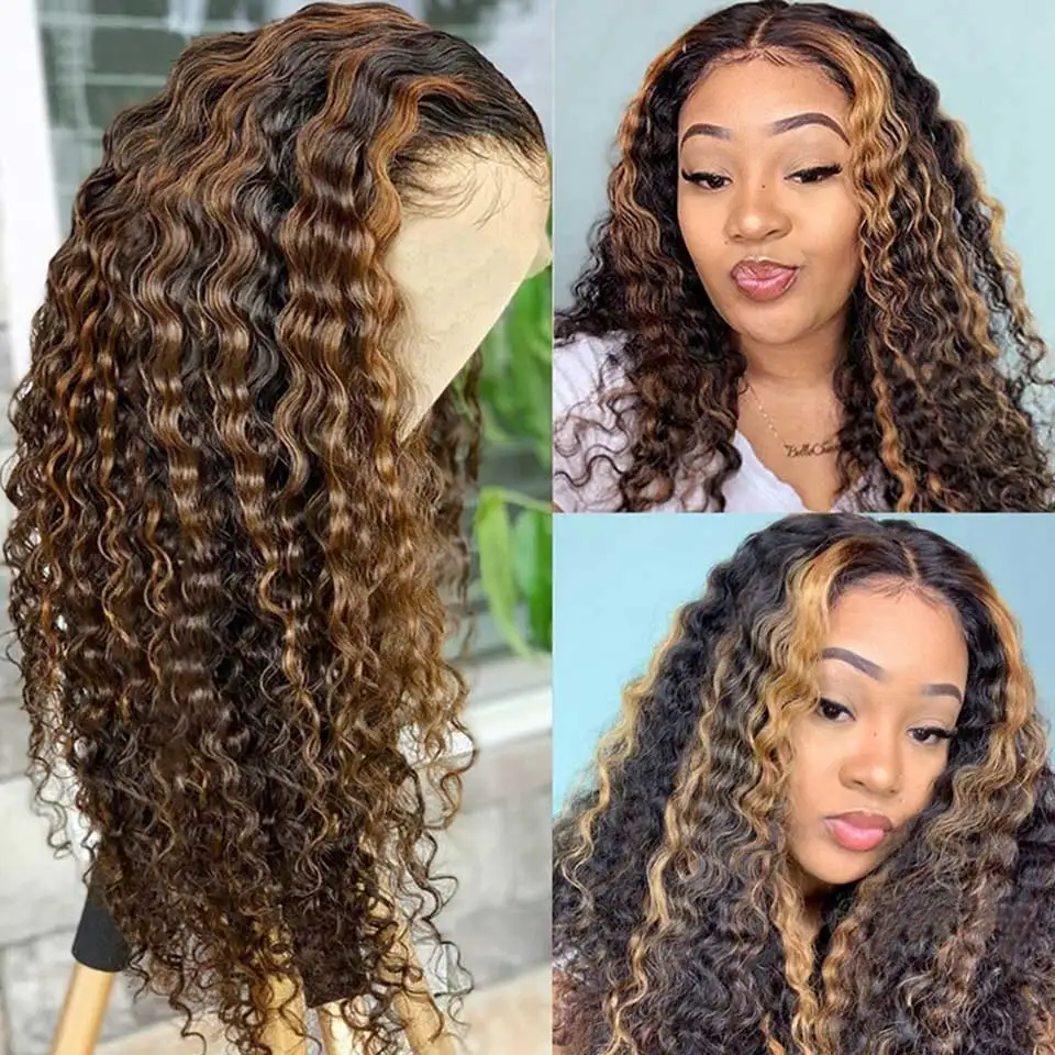 Выделите глубокая волна парик прозрачные кружевные парики влажные и волнистые Синтетические волосы на кружеве парики из натуральных волос на кружевной часть эффектом деграде (переход от темного к глубокая волна фронтальной парик
