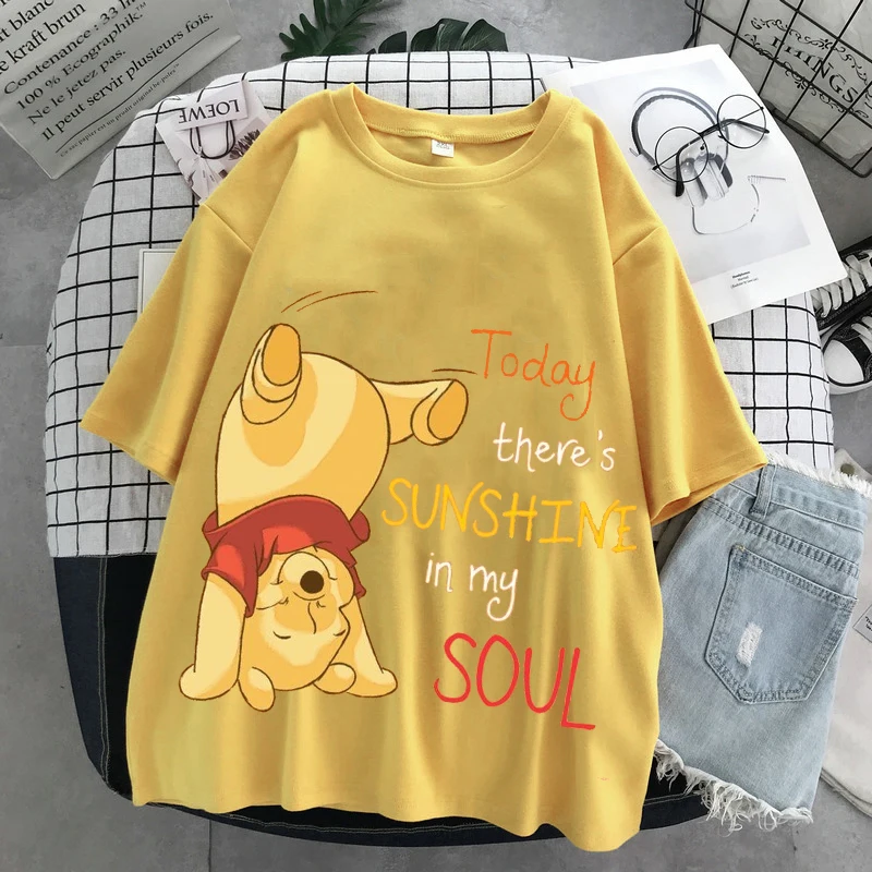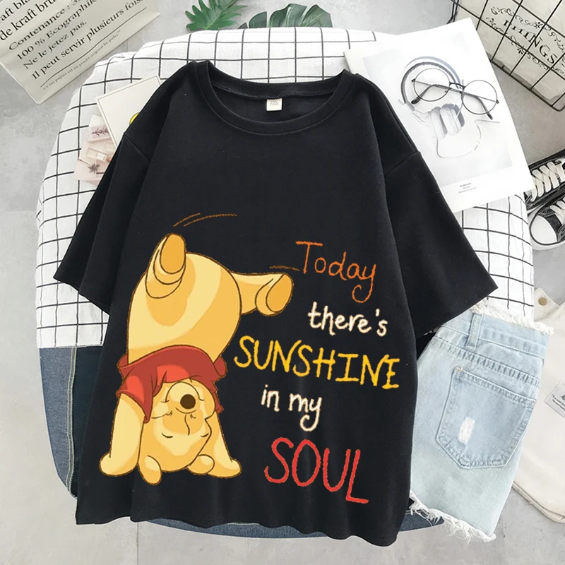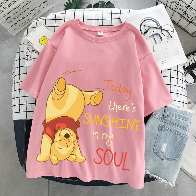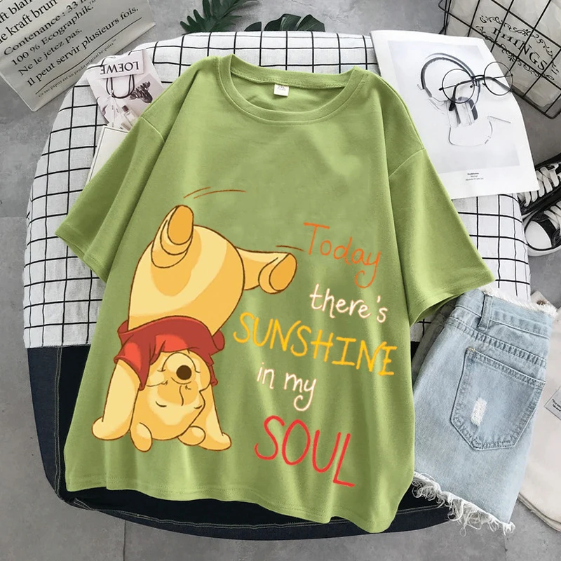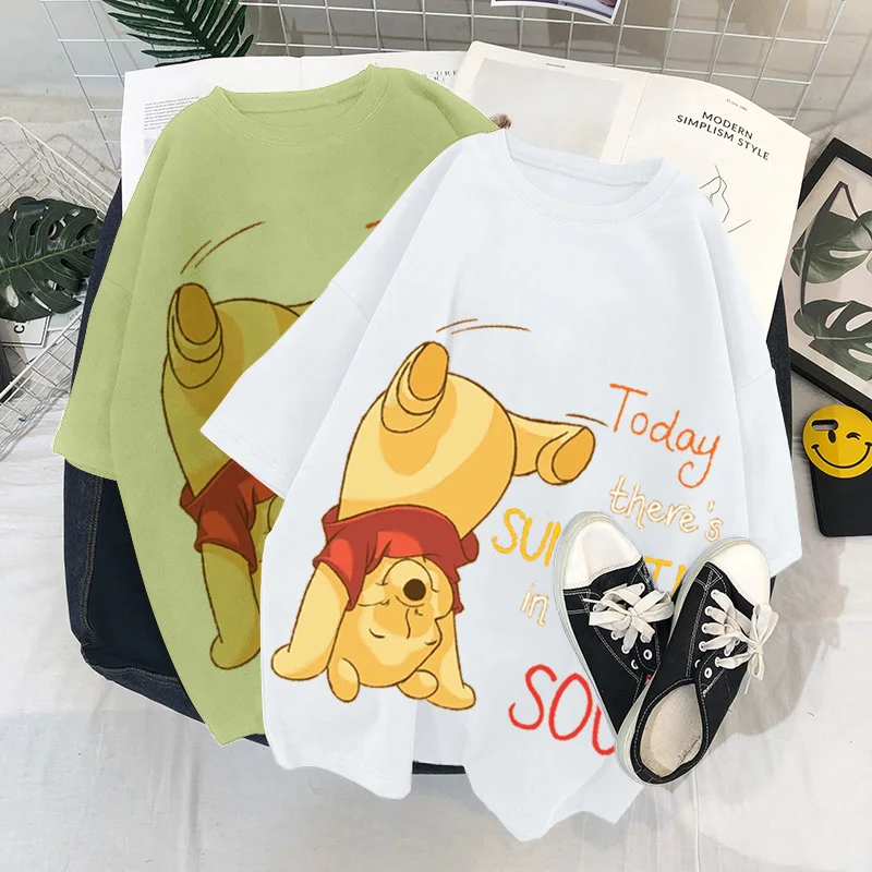 Футболка женская большого размера с мультяшным принтом Винни-Пуха, ...