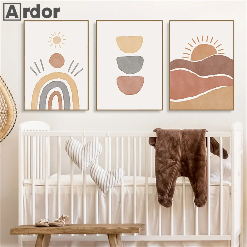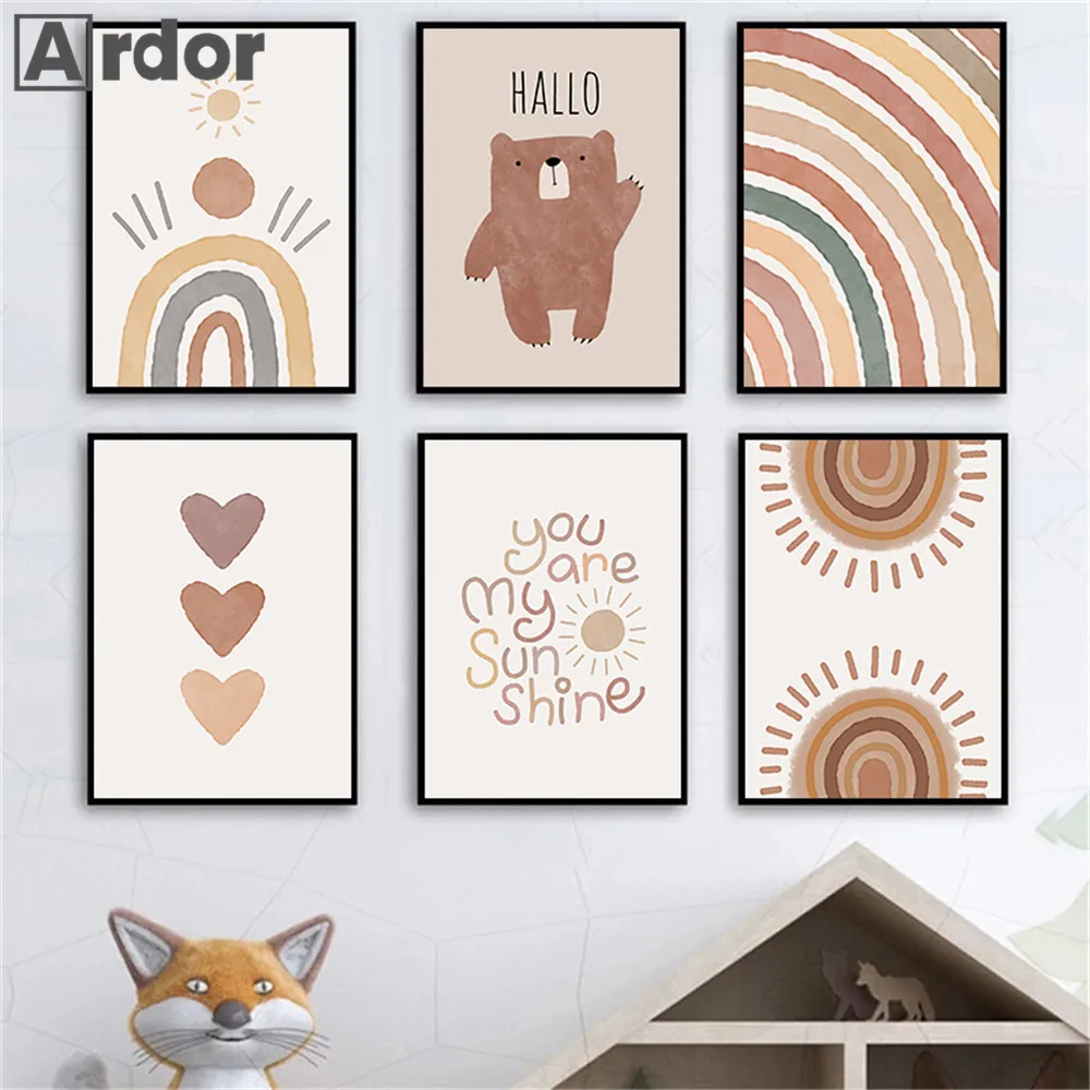Детская Картина на холсте абстрактные сердца солнце Радуга плакаты кактус Олень Медведь Художественная печать цитаты настенные картины Бохо Декор детской комнаты