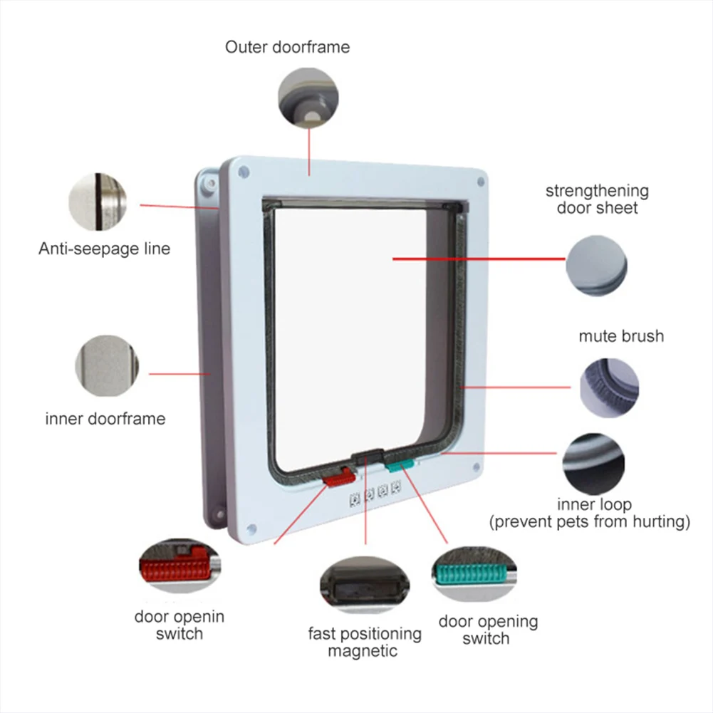 Дверца для домашних питомцев, 4 положения, подходит для кошек, белого и коричневого цвета