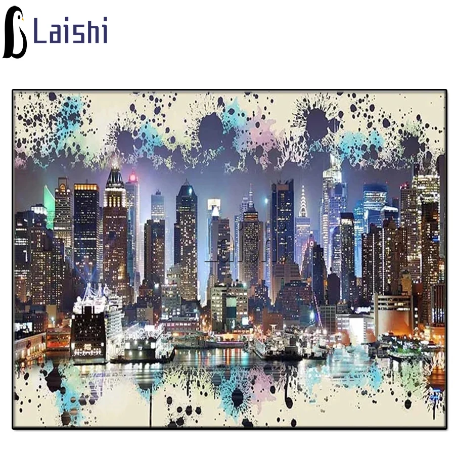 Алмазная живопись, красочная картина с изображением Нью-Йорка, Манхэттена, ночи, алмазная вышивка, мозаика, вышивка крестиком, комплекты, украшение для дома