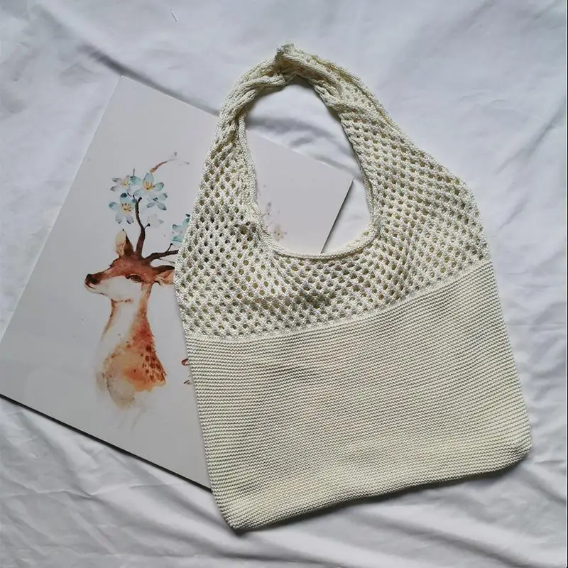 Пляжная вязаная Ретро сумка для девочек, летняя плетеная Сумка-тоут ручной работы, женская вязаная сумка с вырезами
