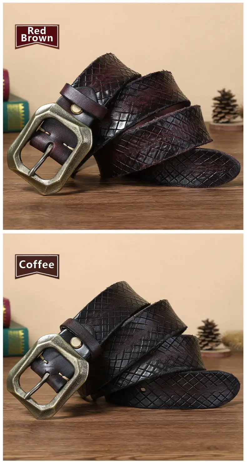Ремень мужской из натуральной кожи с лазерной гравировкой и пряжкой