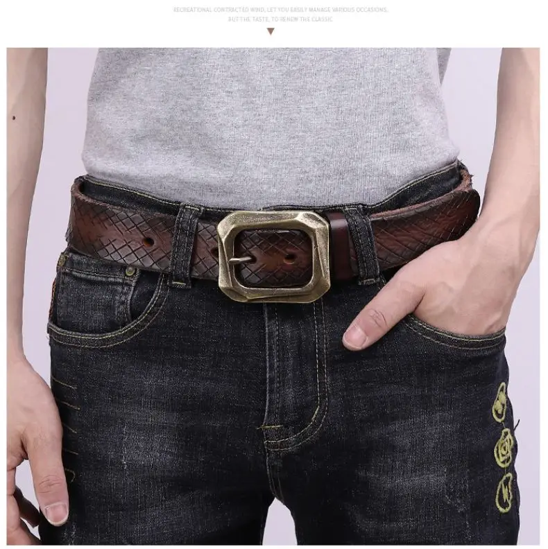 Ремень мужской из натуральной кожи, с пряжкой с язычком, винтажный