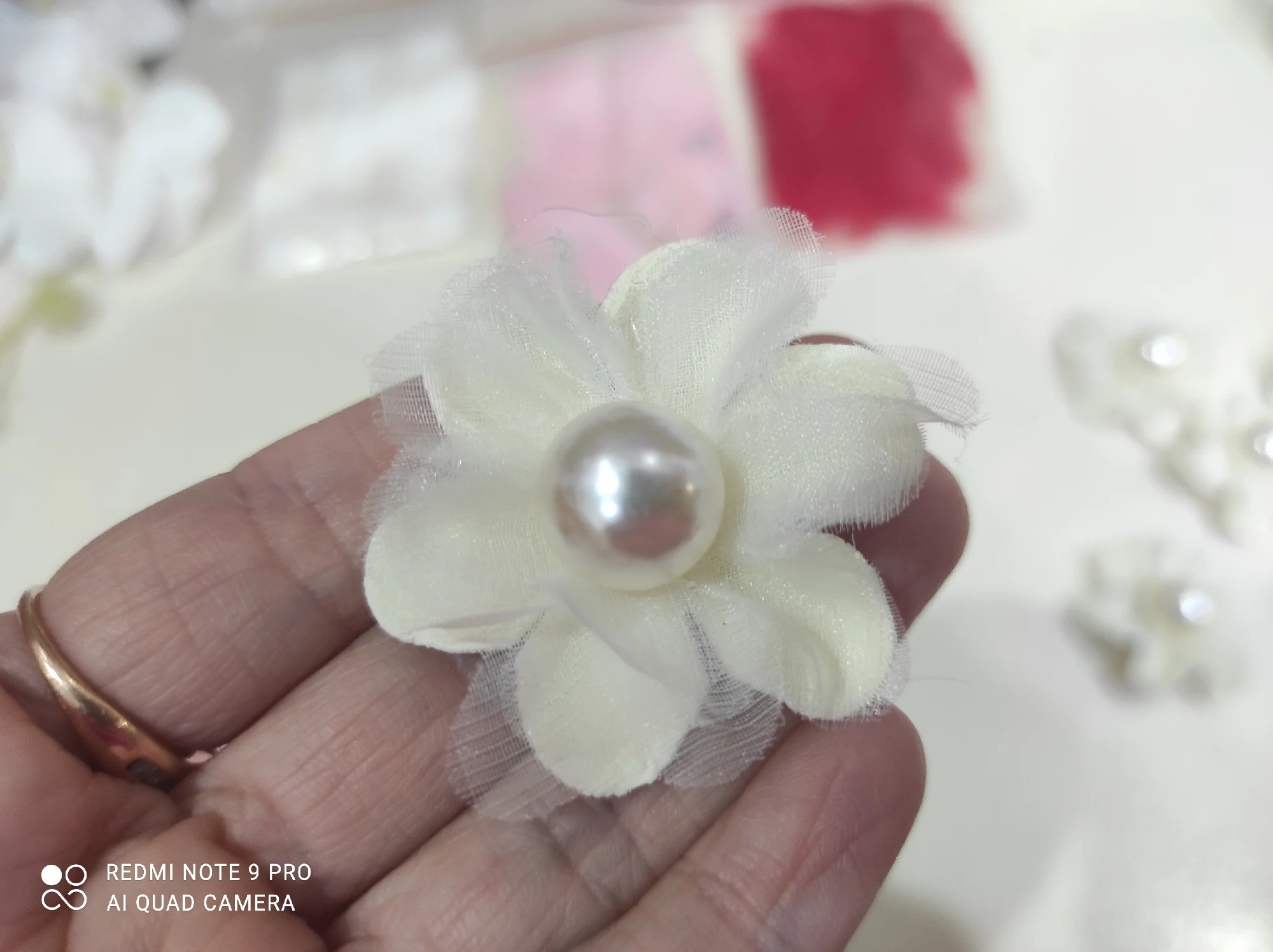 10 шт. 4,2 см 1,6 дюйма мини кружевная отделка шифоновая ткань цветы с жемчугом бутик свадебное платье DIY цветы невесты Фата для волос одежда