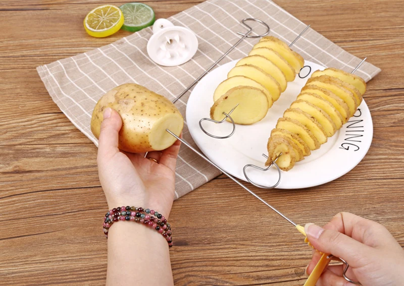 Циклон картофеля Тесак ротационный картофель башня спиральная нарезка Ножи строка ручной резки картофель Кухня аксессуары
