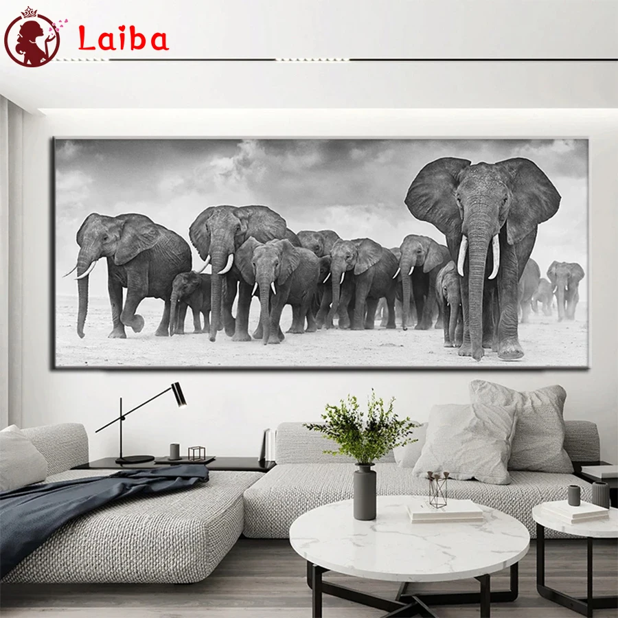 Алмазная мозаика, черно-белая животная, картина со слоном, стадо, алмазная живопись, вышивка крестиком, вышивка, настенное искусство
