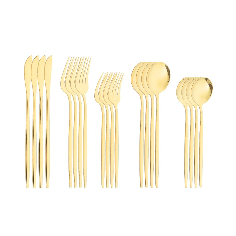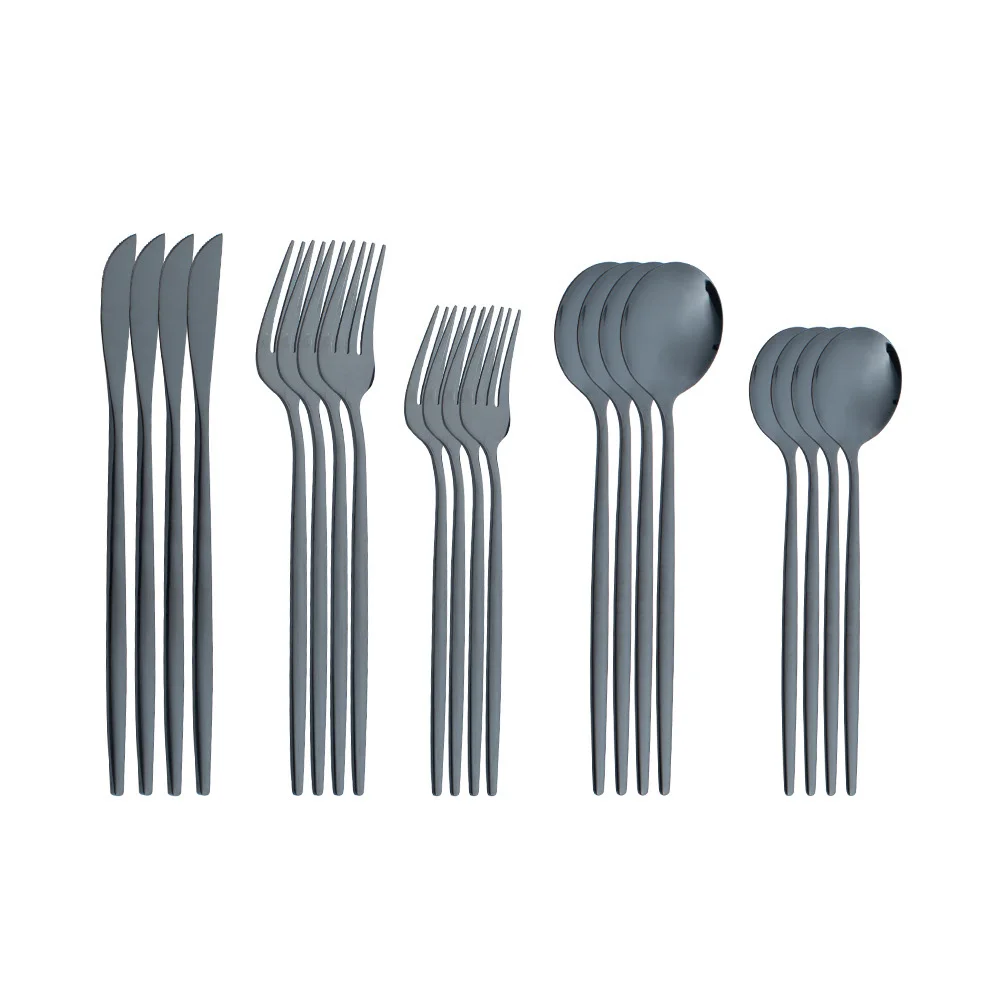 20 комплект столовых приборов Нержавеющаясталь черного и золотого цвета Кухня Dinnenrware набор столовых приборов ужин Ножи, столовая ложка, вилка, ложка для дома