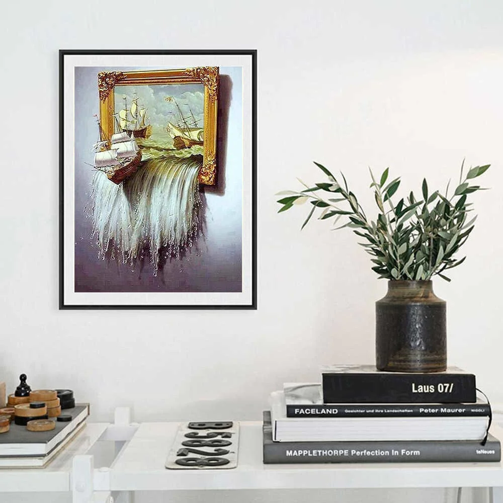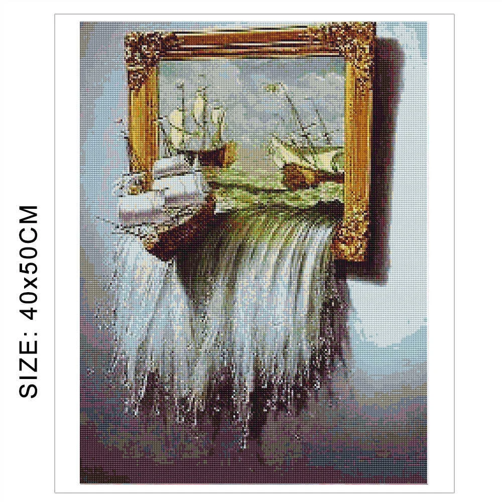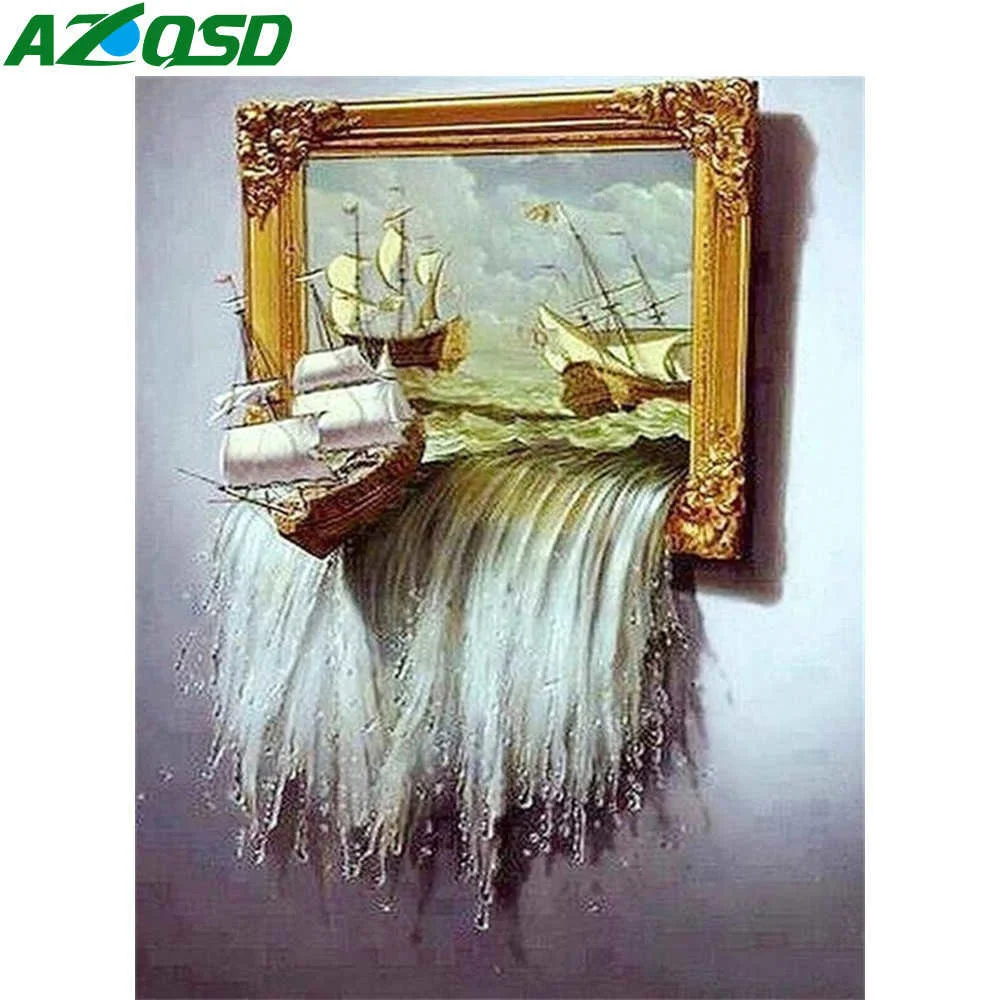 AZQSD Алмазная вышивка лодка водопад мозаика картина Стразы 5D DIY алмазная живопись пейзаж Вышивка крестиком домашний декор