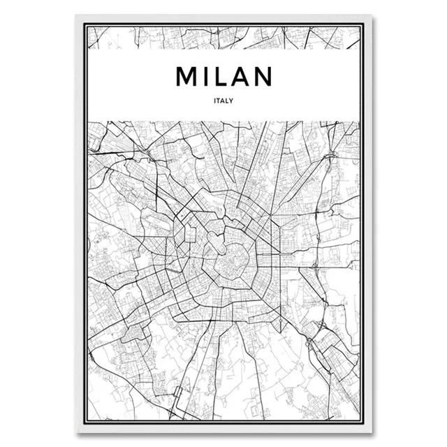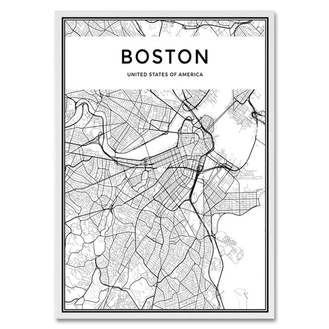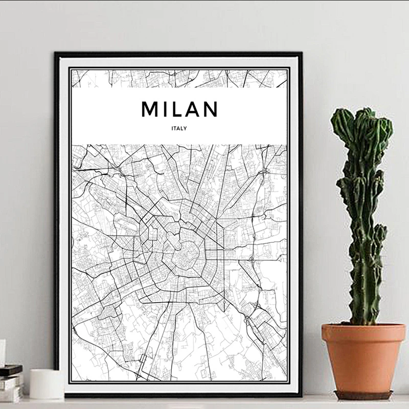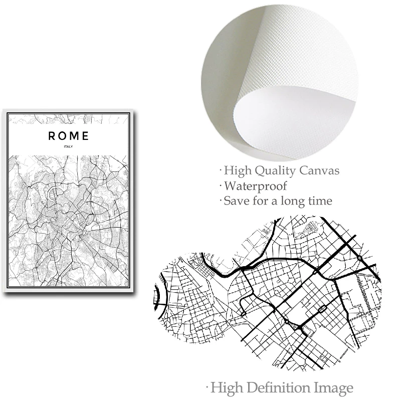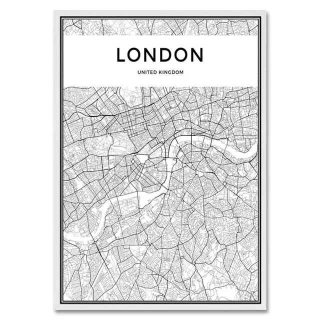 Черно-белая карта городов мира, Нью-Йорк, Токио, Париж, холст, карт...
