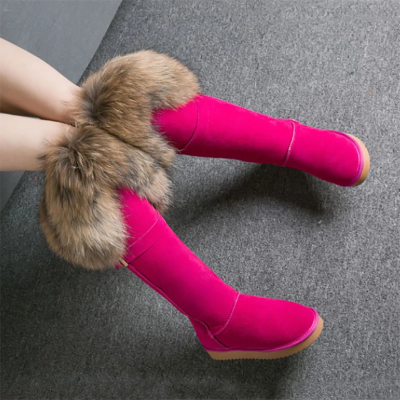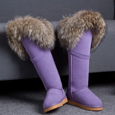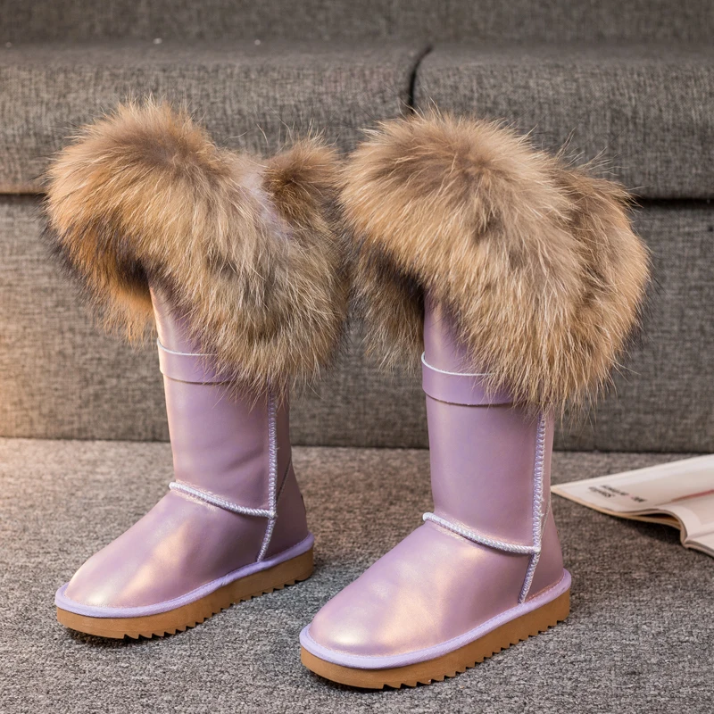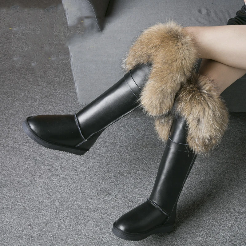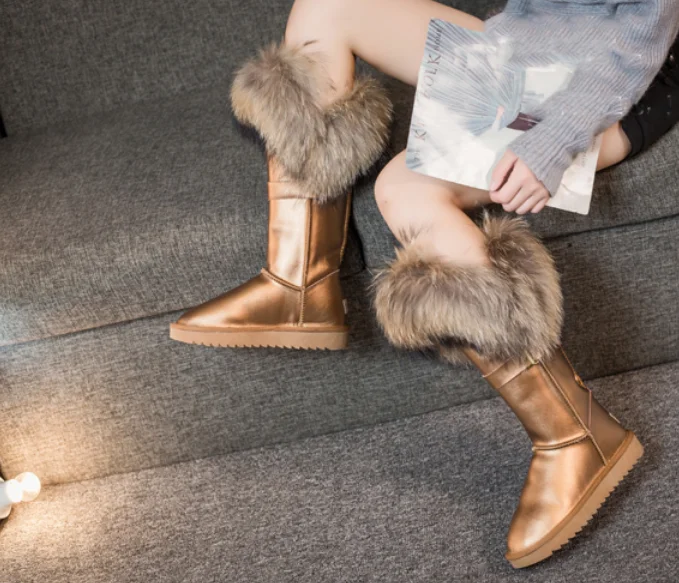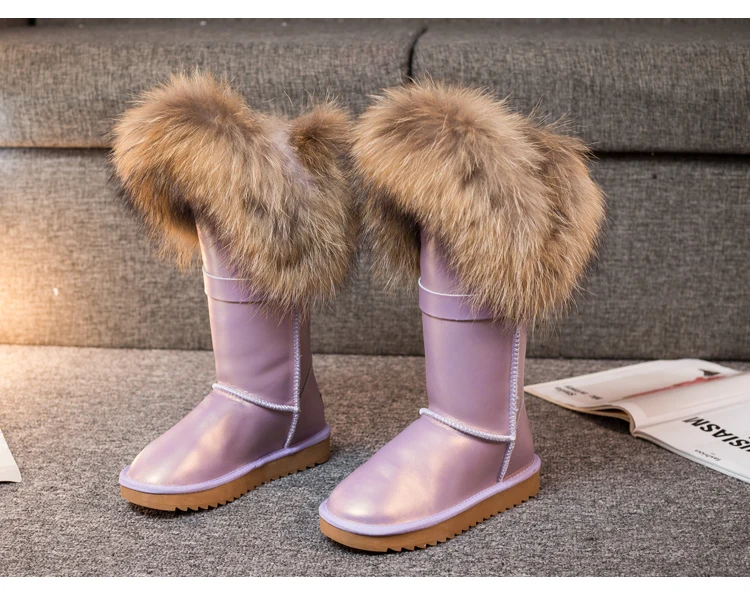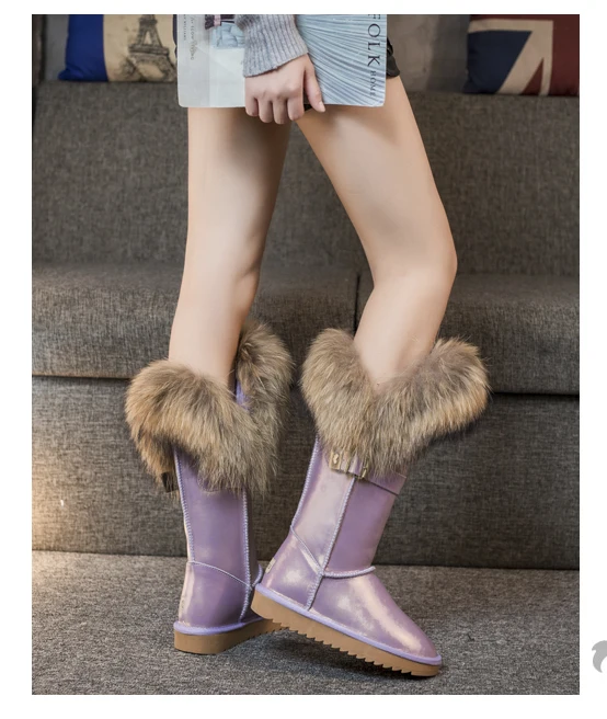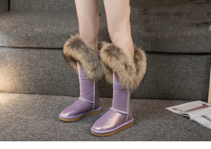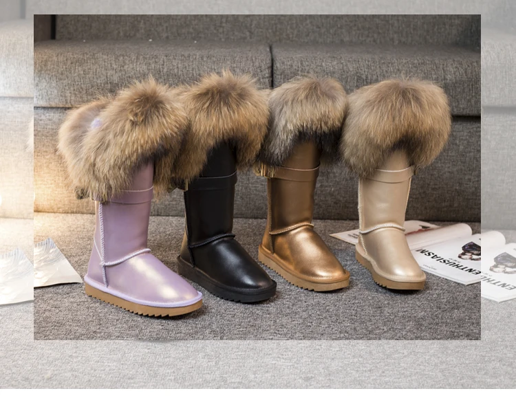 Новинка; Бесплатная доставка; Модные высокие зимние сапоги; Botas Mujer; Женская зимняя обувь из 100% натуральной кожи с натуральным лисьим мехом