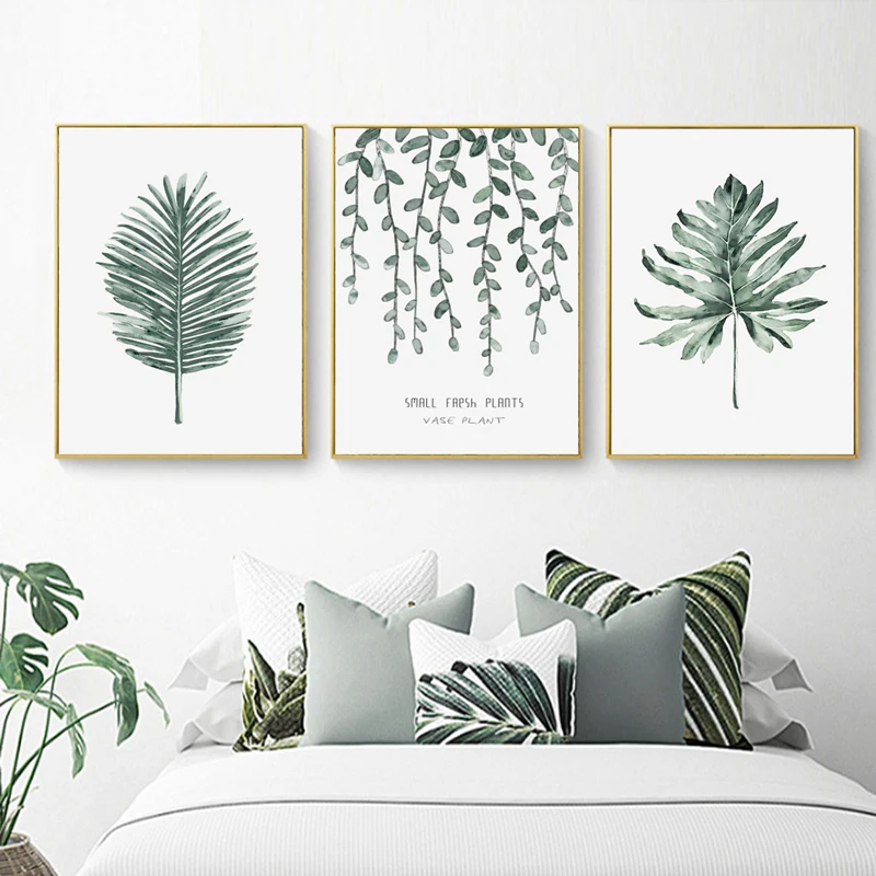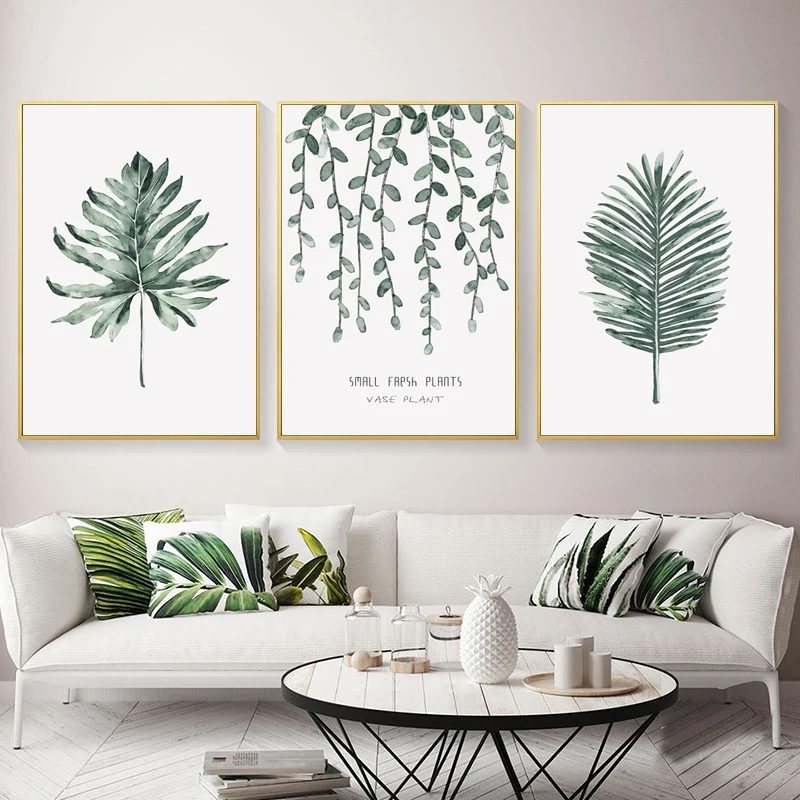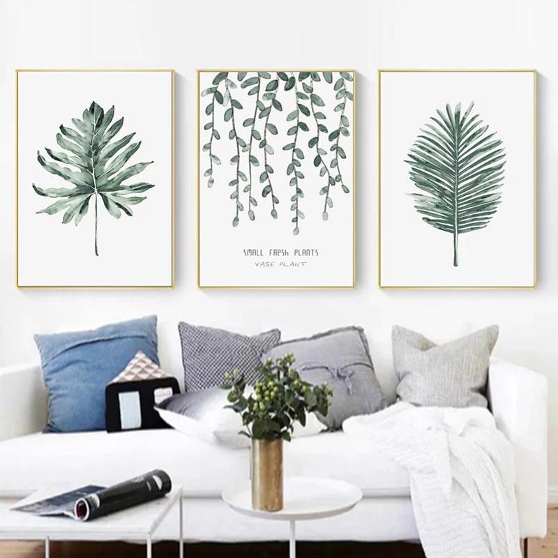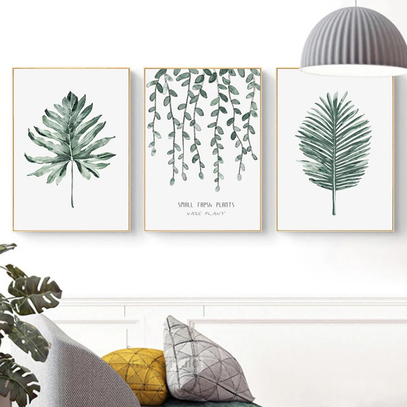 Простые настенные художественные плакаты с зелеными растениями, тро...