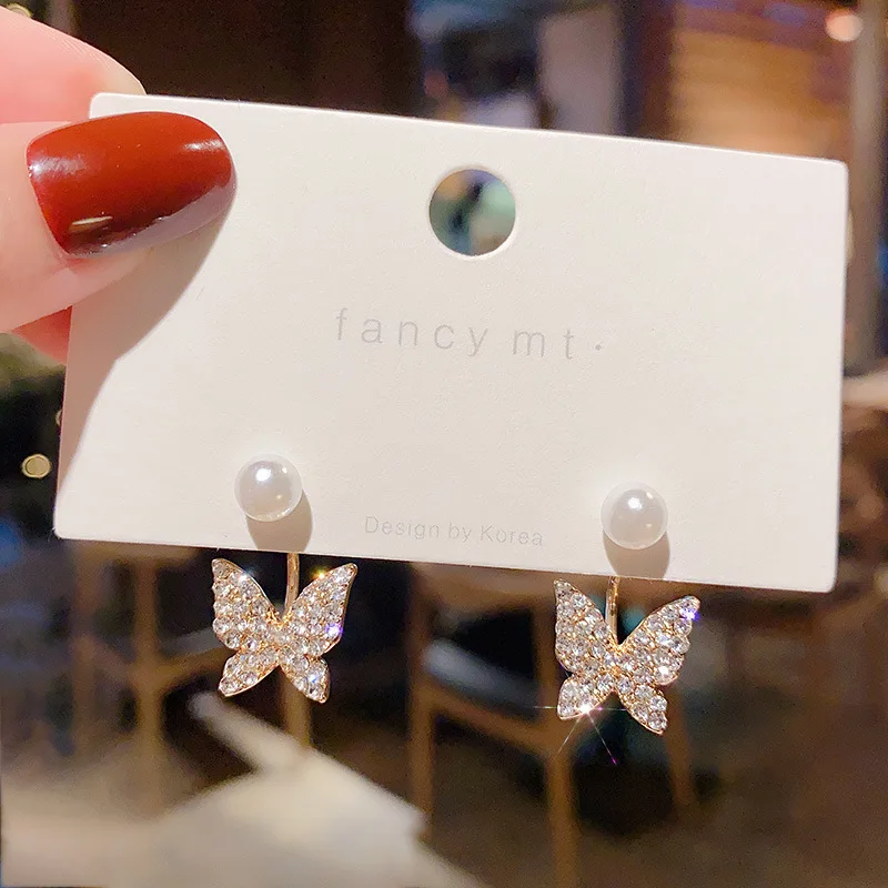 2021 тренд, Необычные Висячие серьги, Винтажные серьги-бабочки с цирконием и жемчугом, стразы, серьги для женщин, аксессуары для ушей