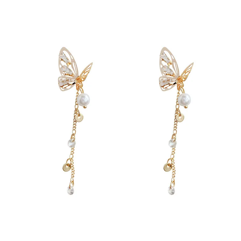 2021 модные Необычные висячие серьги, винтажные циркониевые серьги с жемчугом и бабочкой, серьги Стразы для женщин, аксессуары для ушей