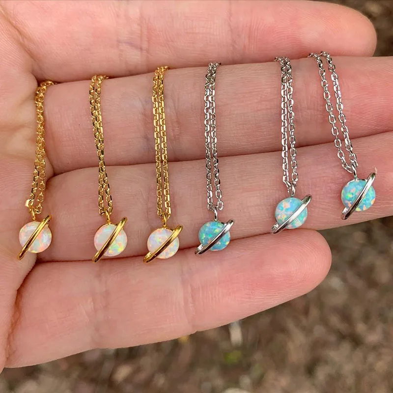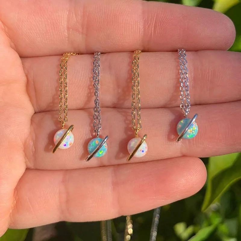 CRMYA ожерелье ручной работы из желтого серебряного опала для женщин Вселенная Ретро Галактический стеклянный шар ожерелье драгоценные камни ювелирные изделия