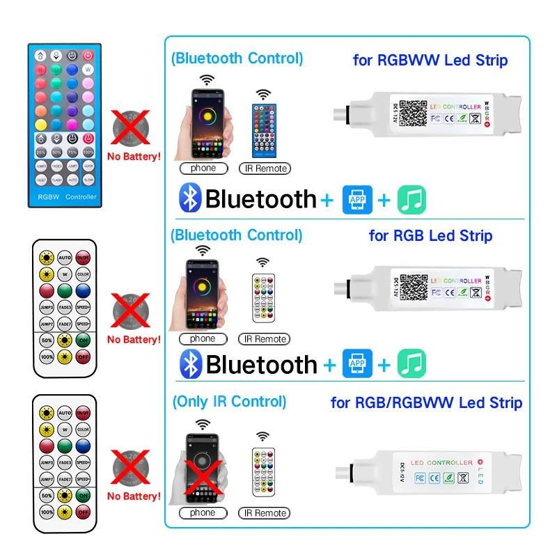 controller 1IR Remote Control + Bluetooth phone APP Controlled