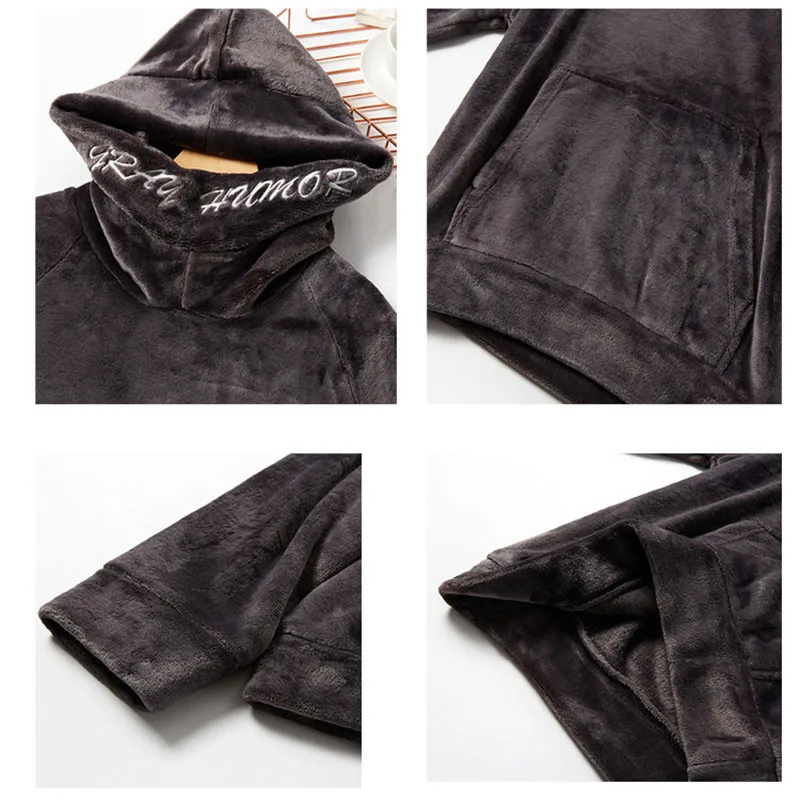 Свободная Мужская пижама большого размера, костюм из двух предметов, фланелевая Домашняя одежда, Повседневная зимняя Домашняя одежда с капюшоном, плотная бархатная Мужская одежда для сна