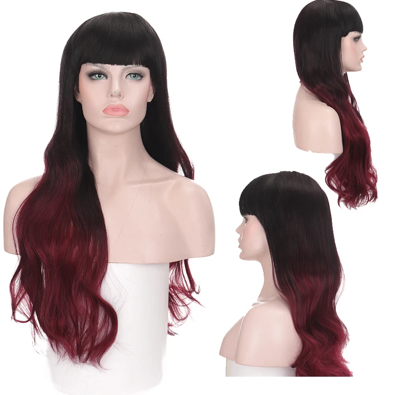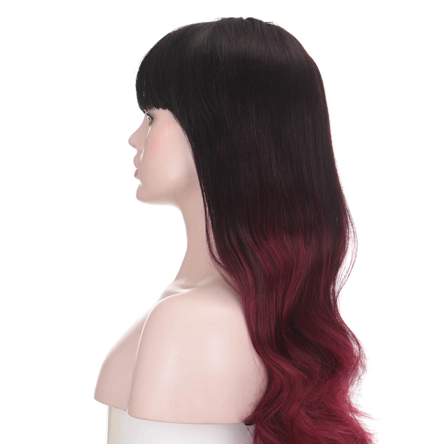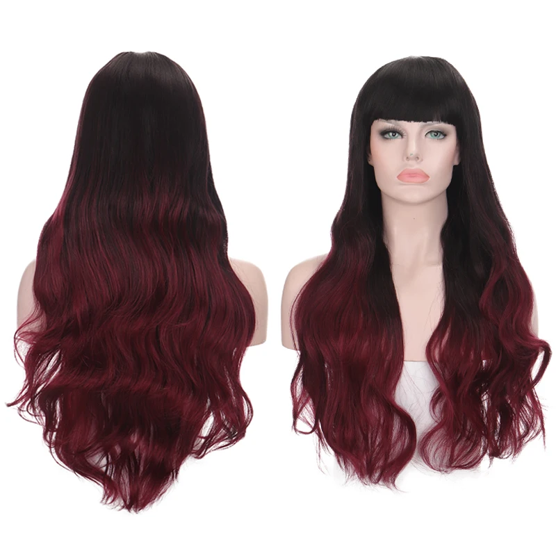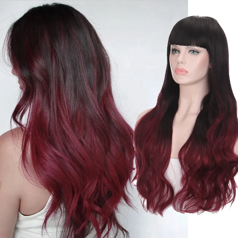 XUANGUANG синтетический длинный волнистый парик 28 дюймов с челкой черный и красный градиент длинные вьющиеся волосы подходит для повседневной носки женской