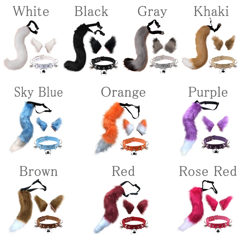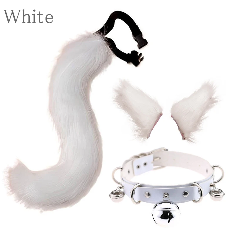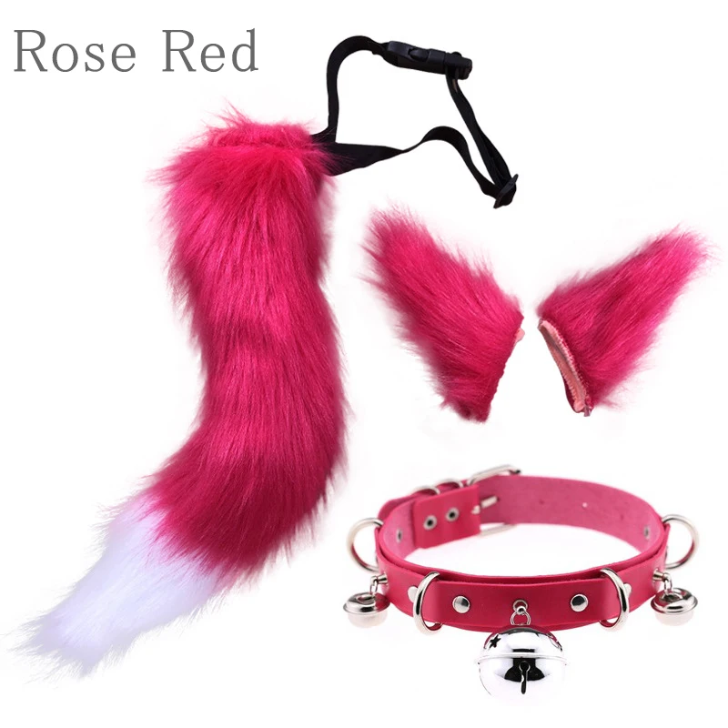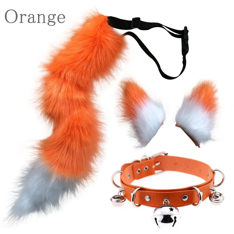 Комплект из клипс и хвоста с лисьими кошачьими ушками, ошейник с заклепками, плюшевый аксессуар для косплея, для вечевечерние НКИ в стиле аниме, Костюмы для ролевых игр на Хэллоуин