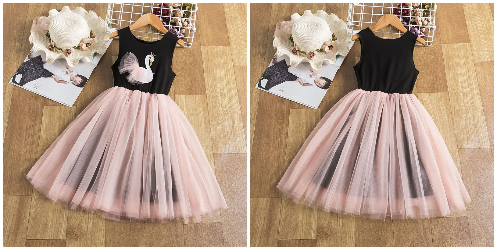 Для девочек Летнее платье принцессы платье без рукавов с вышитым рисунком лебедя с фатиновой юбкой и рисунком и пышной юбкой из газовой ткани для Сладкий День Рождения вечерние бальные платья для детей